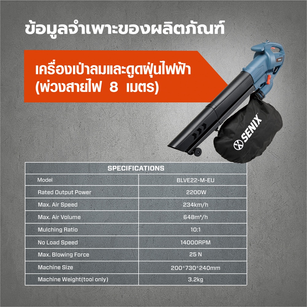 | รุ่น | BLVE22-M-EU สีน้ำเงิน (พ่วงสายไฟ8เมตร) |