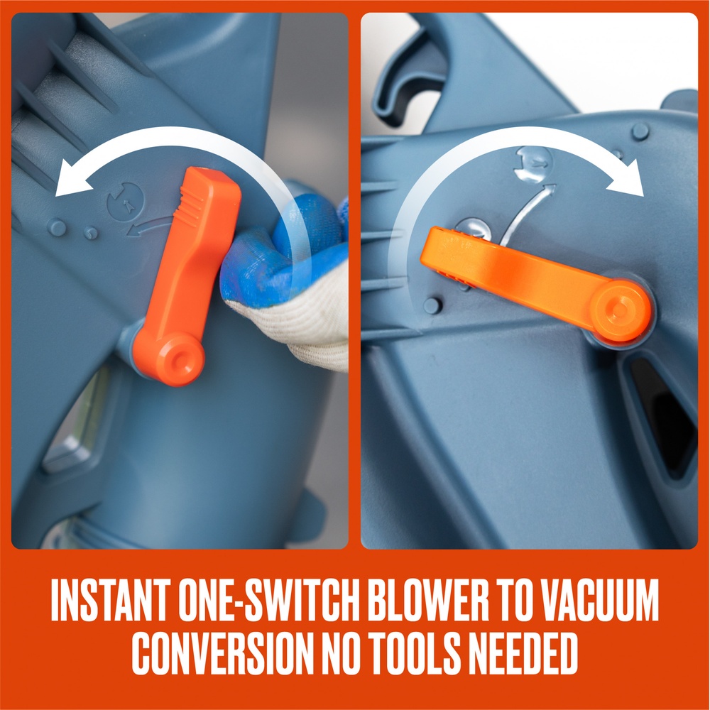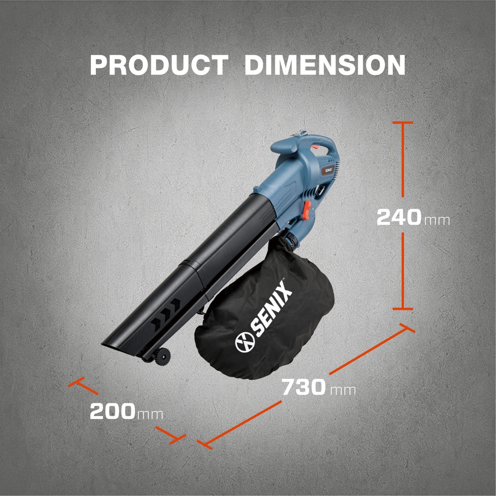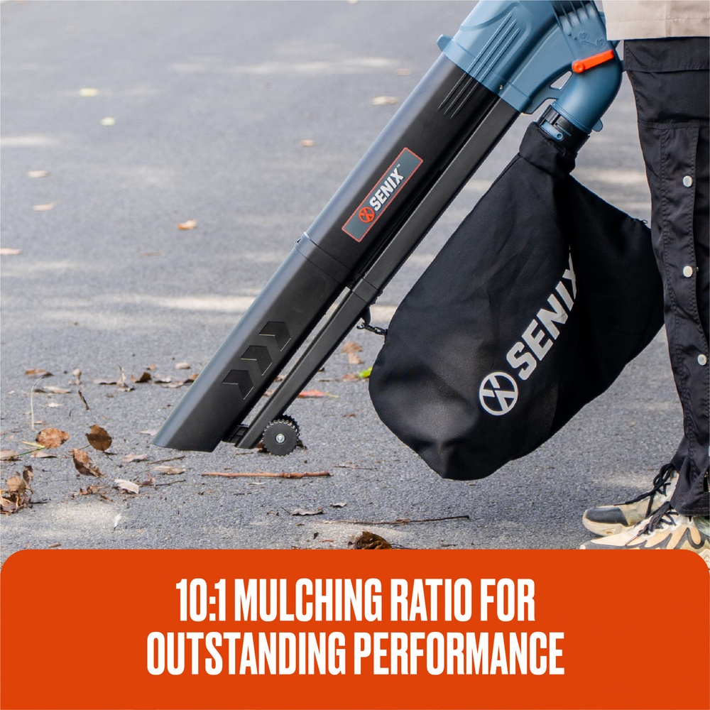 สามารถบดย่อยใบไม้ได้ในอัตราส่วน 10:1 เมื่อดูดเข้าผ่านเครื่องแล้วลงถุงดักฝุ่น