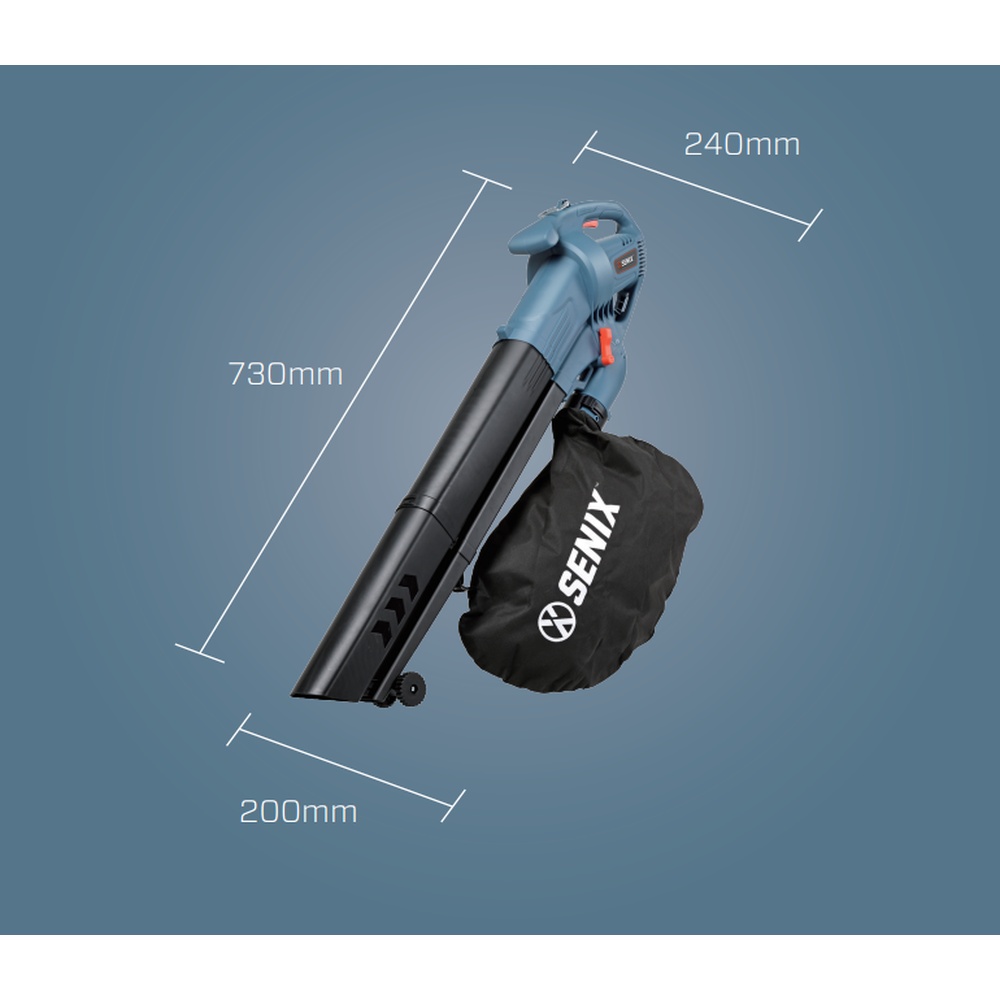 SENIX เครื่องเป่าและดูดใบไม้ 2200W รุ่น BLVE22-M-EU สีน้ำเงิน เป็นเครื่องมืออเนกประสงค์สำหรับทำความสะอาดสวน ด้วยกำลังไฟ 2200 วัตต์ ทำงานได้อย่างมีประสิทธิภาพ ทั้งการเป่าใบไม้และดูดเก็บใบไม้เข้าถุง ถุงเก็บใบไม้ขนาดใหญ่ช่วยลดความถี่ในการเททิ้ง และสามารถปรับความเร็วลมได้ตามต้องการ เหมาะสำหรับผู้ที่ต้องการดูแลสวนให้สะอาด