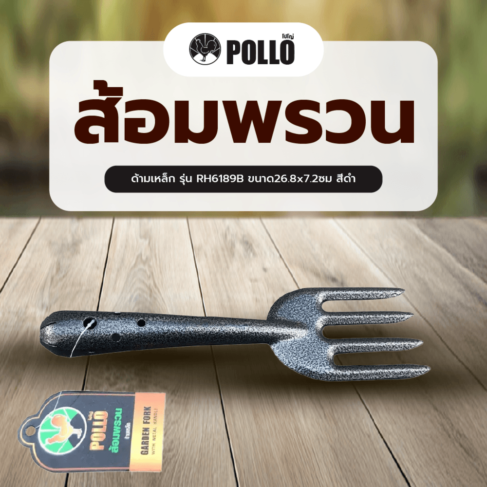 POLLO ส้อมพรวนด้ามเหล็ก รุ่น RH6189B ขนาด26.8x7.2ซม สีดำ