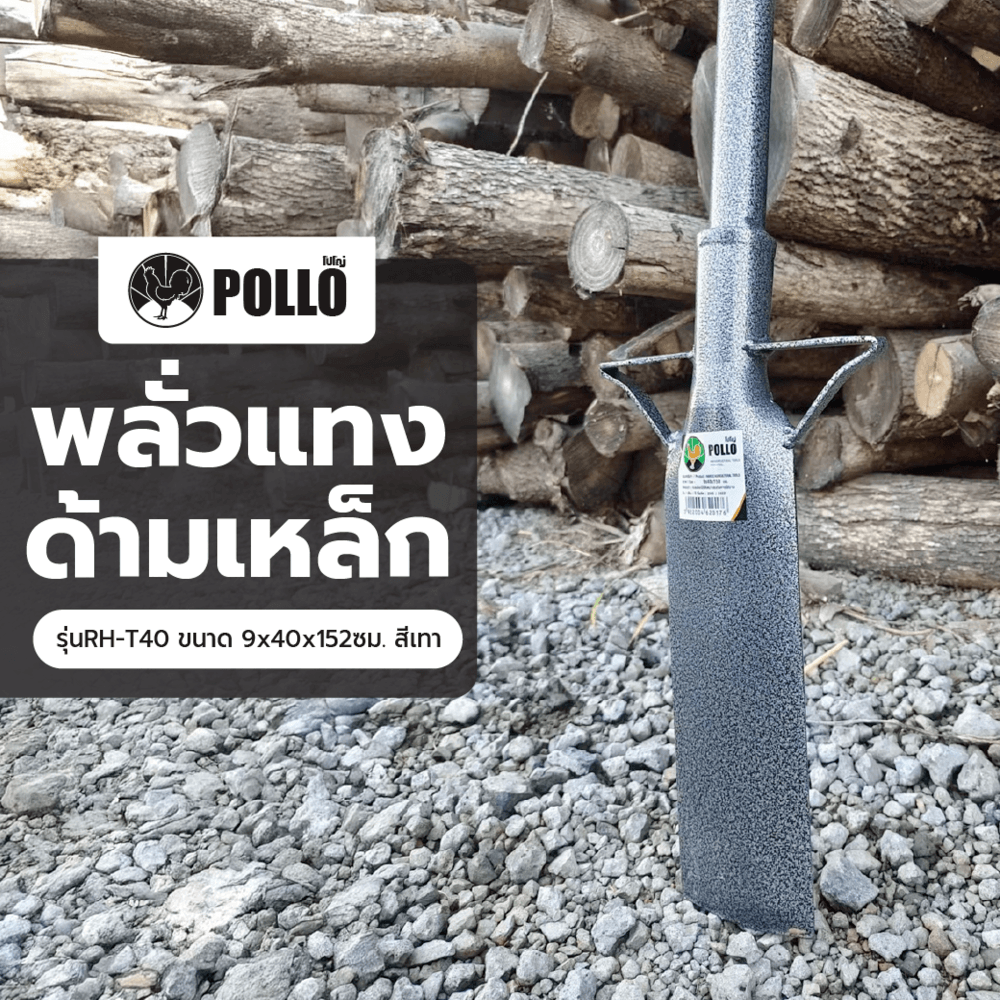 POLLO พลั่วแทงด้ามเหล็ก รุ่นRH-T40 ขนาด 9x40x152ซม. สีเทา
