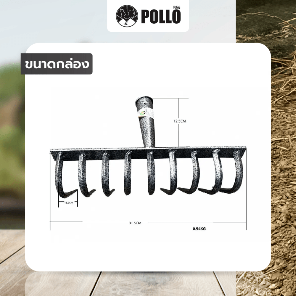 POLLO หัวคราดโกยหญ้าเหล็ก9ฟัน รุ่นRH-9T สีเทา