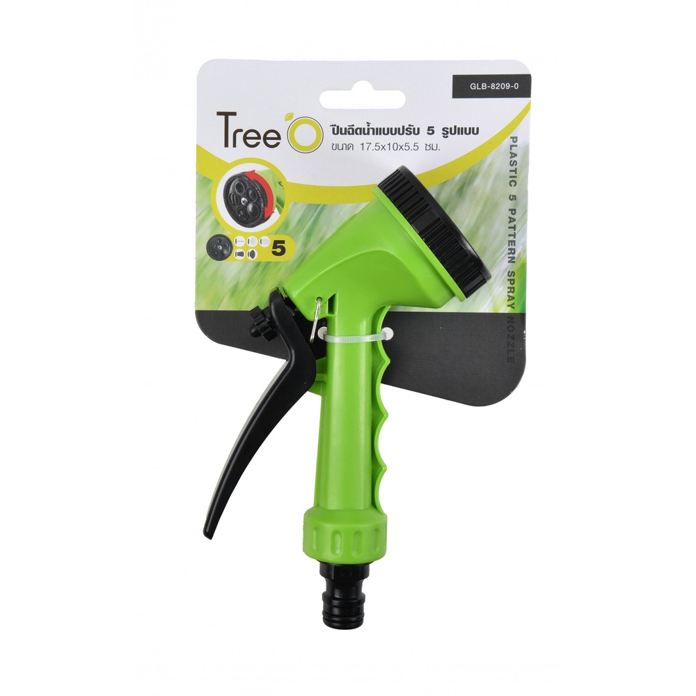 Tree'O ปืนฉีดน้ำแบบปรับ5รูปแบบ รุ่นGLB-8209-0 สีเขียวดำ ปืนฉีดน้ำคุณภาพดีที่ปรับรูปแบบการฉีดได้หลากหลายตามต้องการ