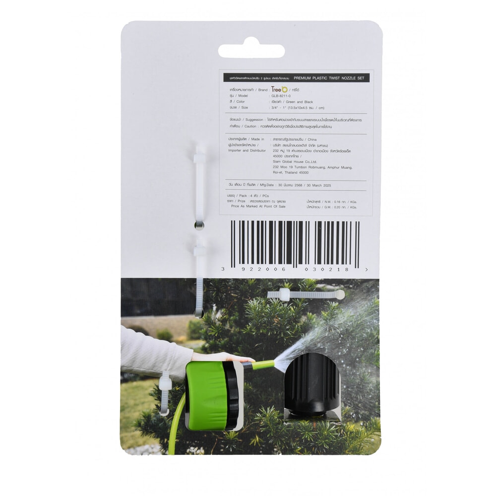 Tree'O ชุดหัวฉีดพลาสติกแบบบิดปรับ2รูปแบบ สำหรับก๊อกสนาม3/4“-1” รุ่นGLB-8211-0 สีเขียวดำ ชุดเดียวเอาอยู่!