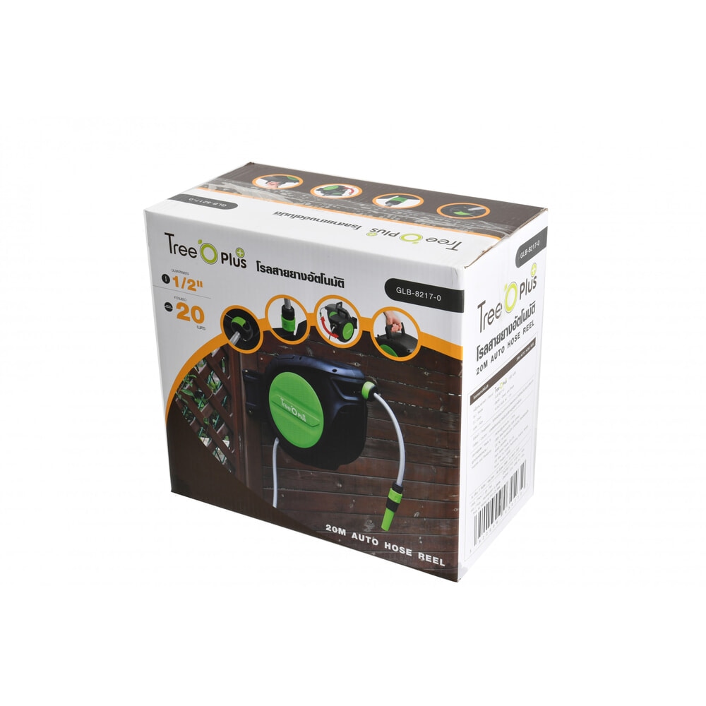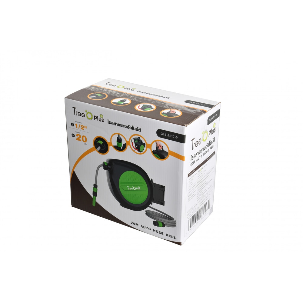 Tree'O Plus โรลสายยางอัตโนมัติ ขนาด1/2ยาว20 เมตร รุ่นGLB-8217-0 สีเขียวดำ ที่จะช่วยเก็บสายยางให้คุณโดยอัตโนมัติ!