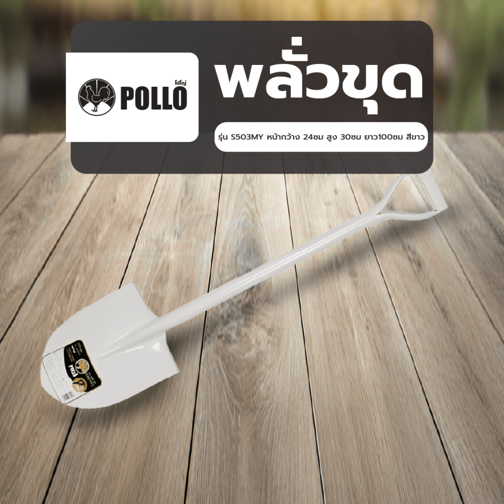 POLLO พลั่วขุด รุ่นS503MY หน้ากว้าง 24ซม สูง 30ซม ยาว100ซม สีขาว