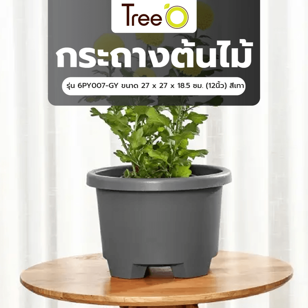 Tree O กระถางต้นไม้ทรงกลม ขนาด 7นิ้ว สีเทา รุ่น 6PY007-GY