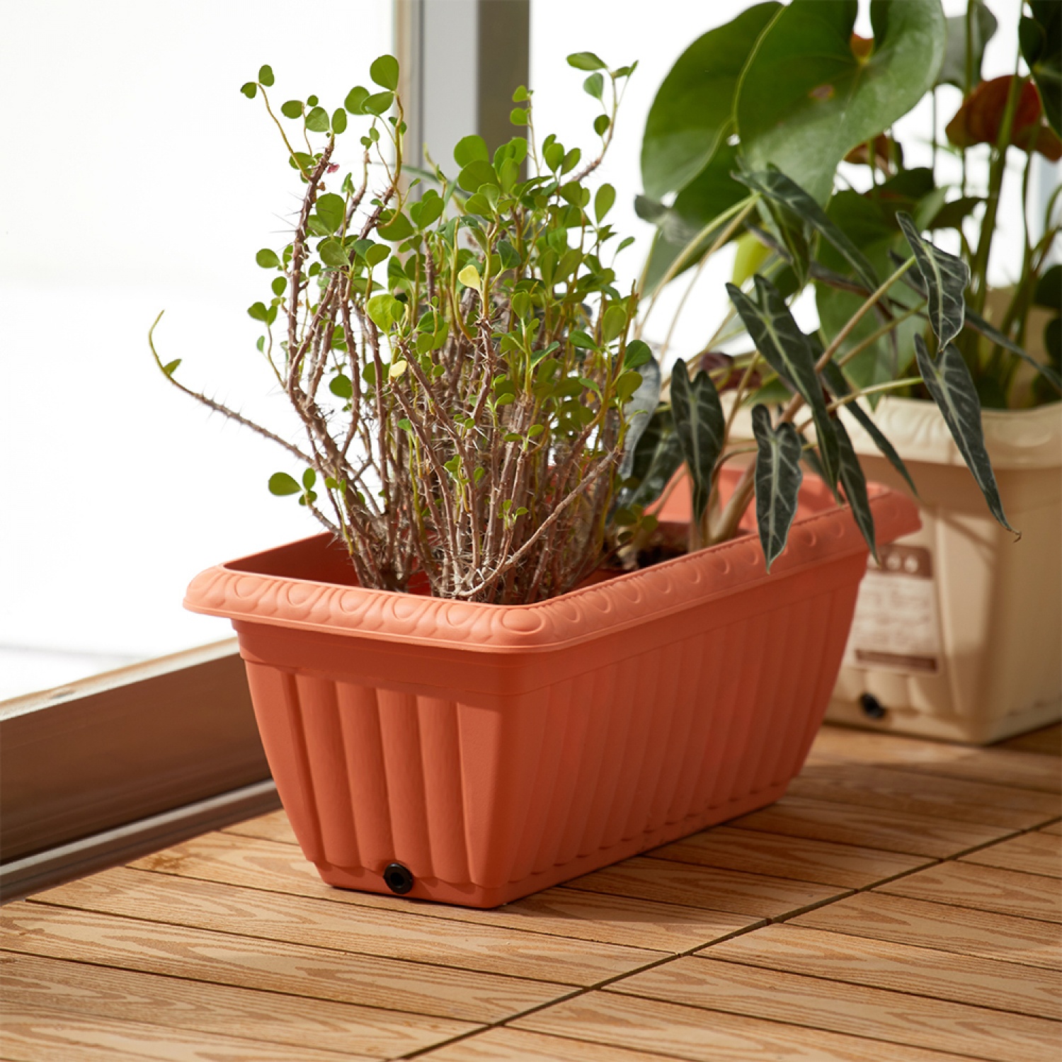 กระถางต้นไม้ทรงสี่เหลี่ยมผืนผ้าเป็นกระถางที่เหมาะสำหรับการจัดสวนแบบเรียงเป็นแนวยาวหรือปลูกต้นไม้ที่ต้องการพื้นที่กว้างในลักษณะเป็นแถว เช่น พืชคลุมดิน พืชสมุนไพร