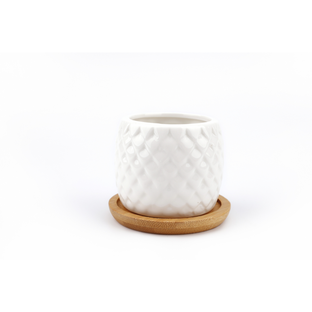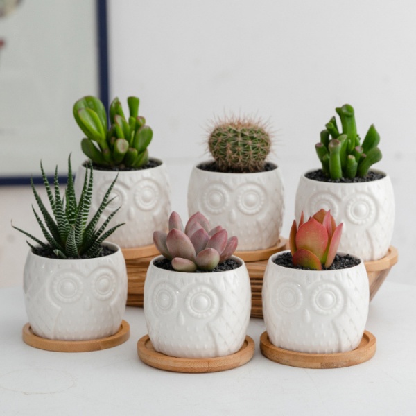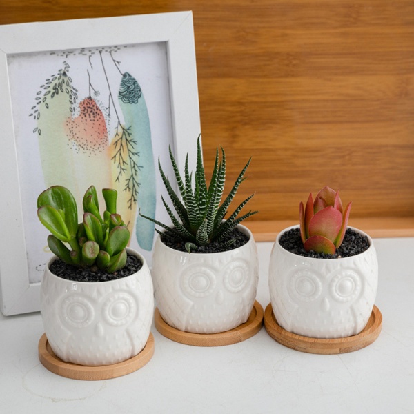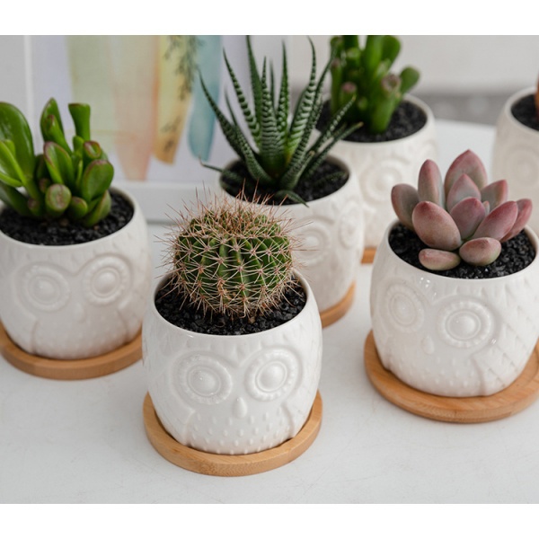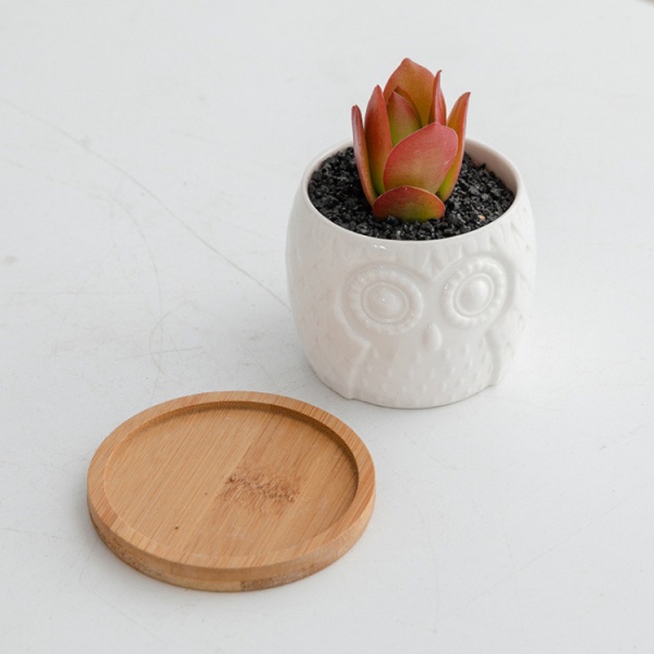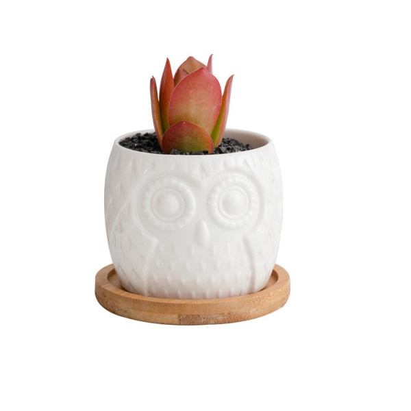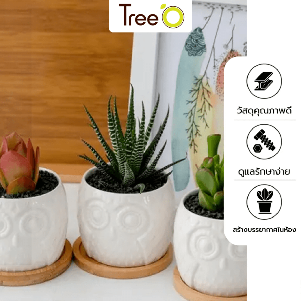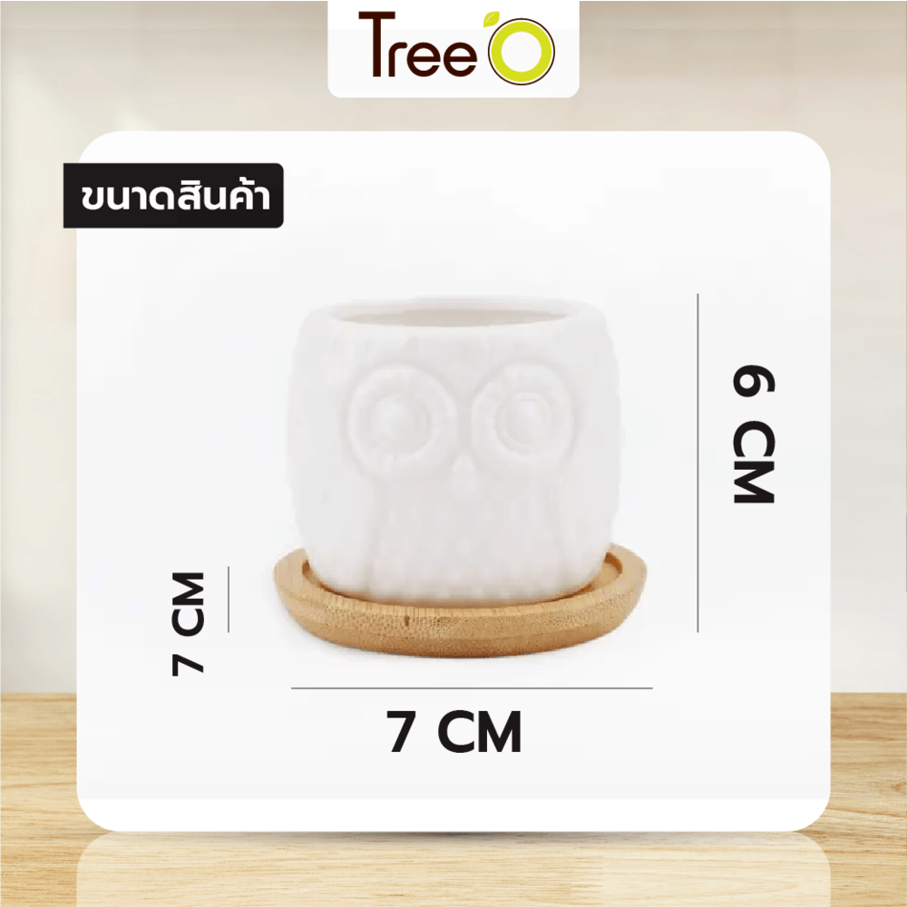 Tree O กระถางเซรามิก นกฮูกพร้อมจานรอง ขนาด: 7x7x6 ซม. รุ่น 4LY-003 สีขาว