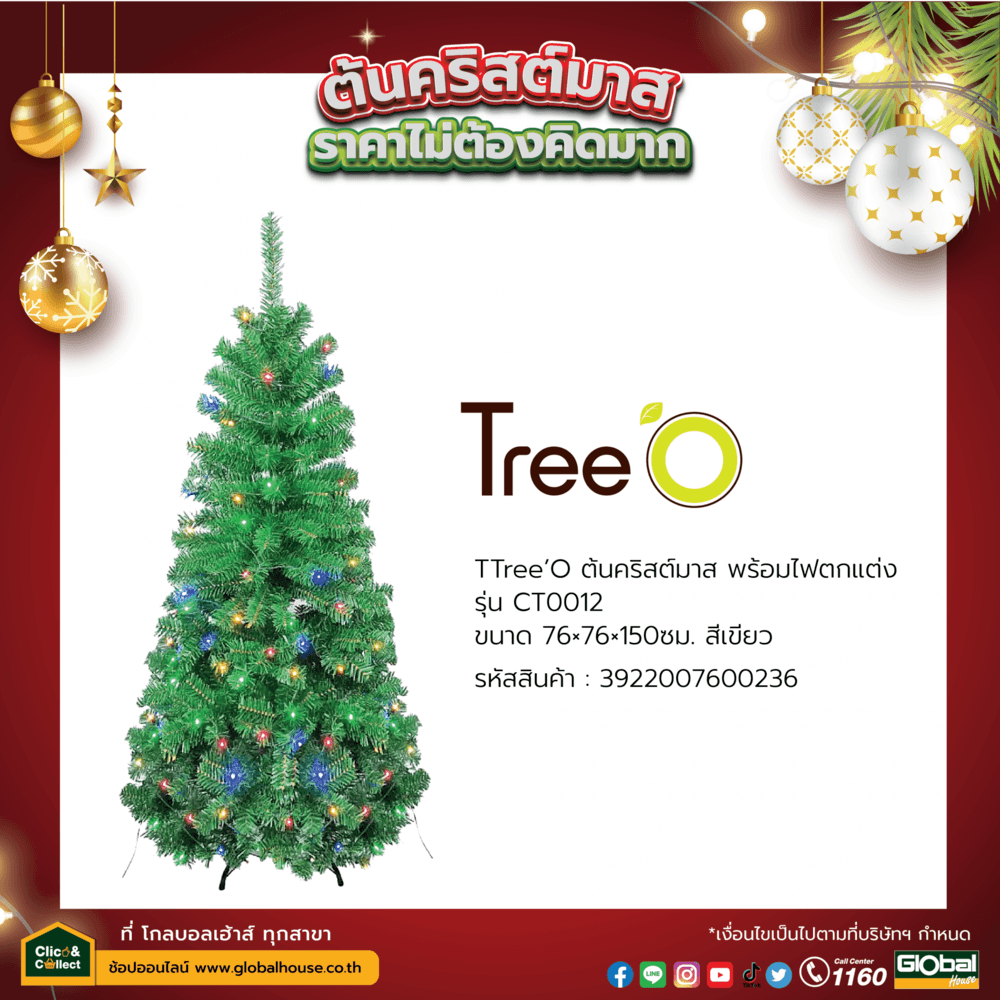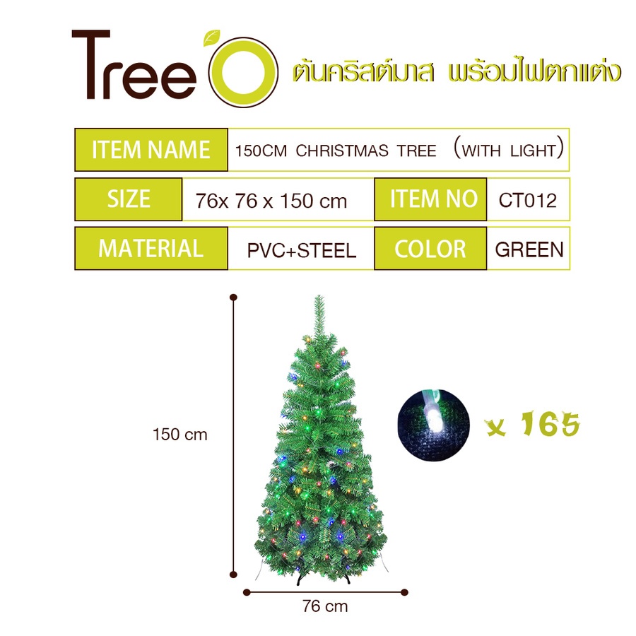 Tree’O ต้นคริสต์มาส พร้อมไฟตกแต่ง รุ่นCT0012 ขนาด76×76×150ซม. สีเขียว