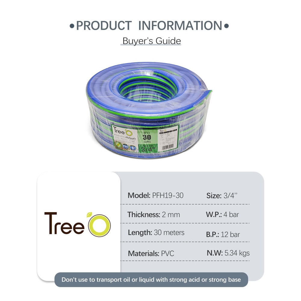 Tree O สายยาง PVC เสริมใยแก้ว รุ่น PFH19-30 ขนาด 3/4
