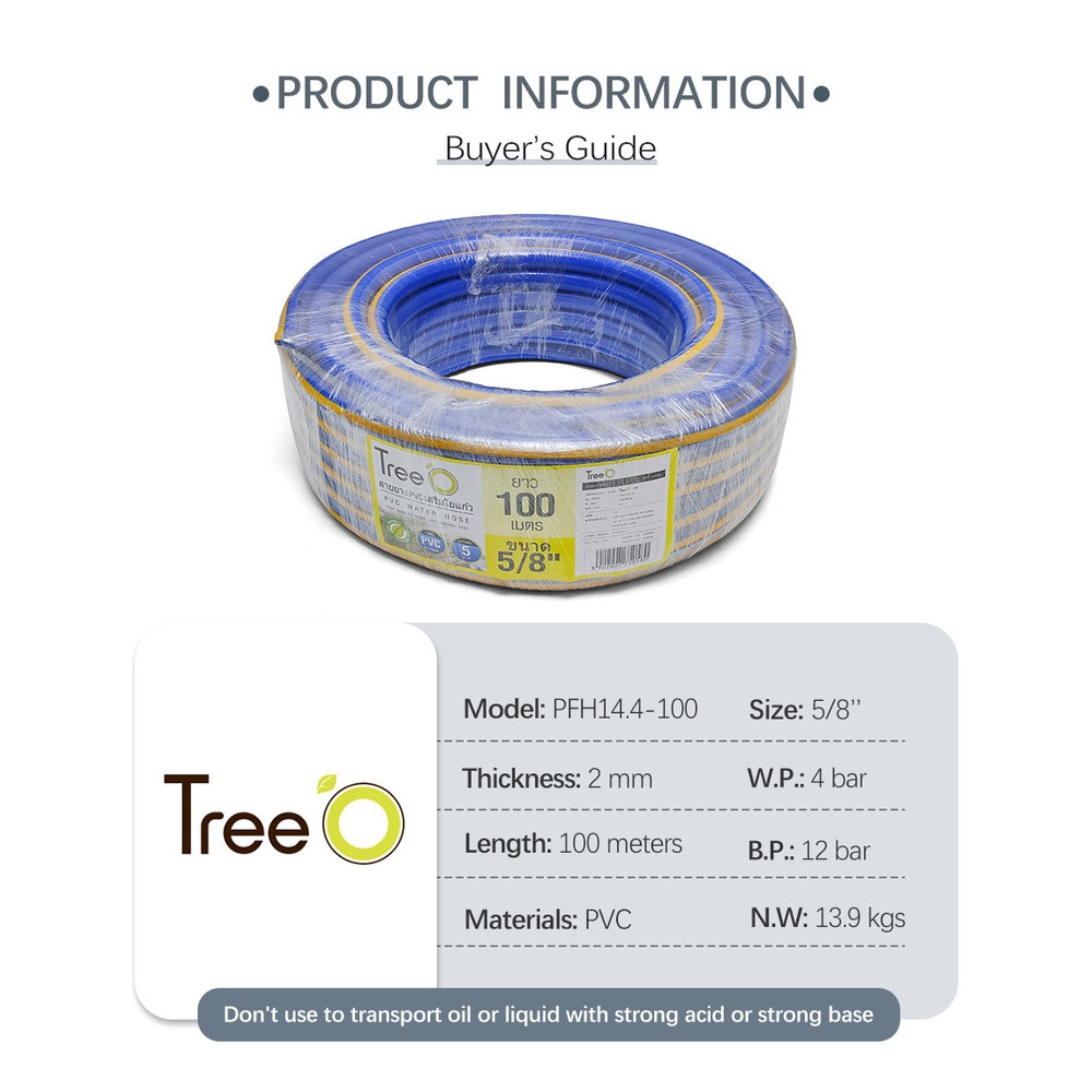 Tree’O สายยาง พีวีซี เสริมใยแก้ว รุ่น PFH14.4-100 ขนาด 5/8x100M.