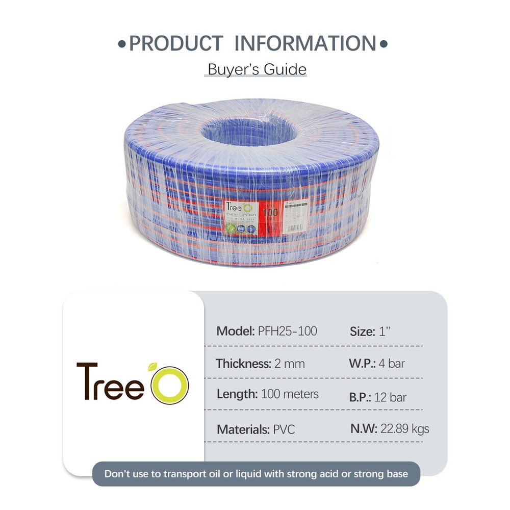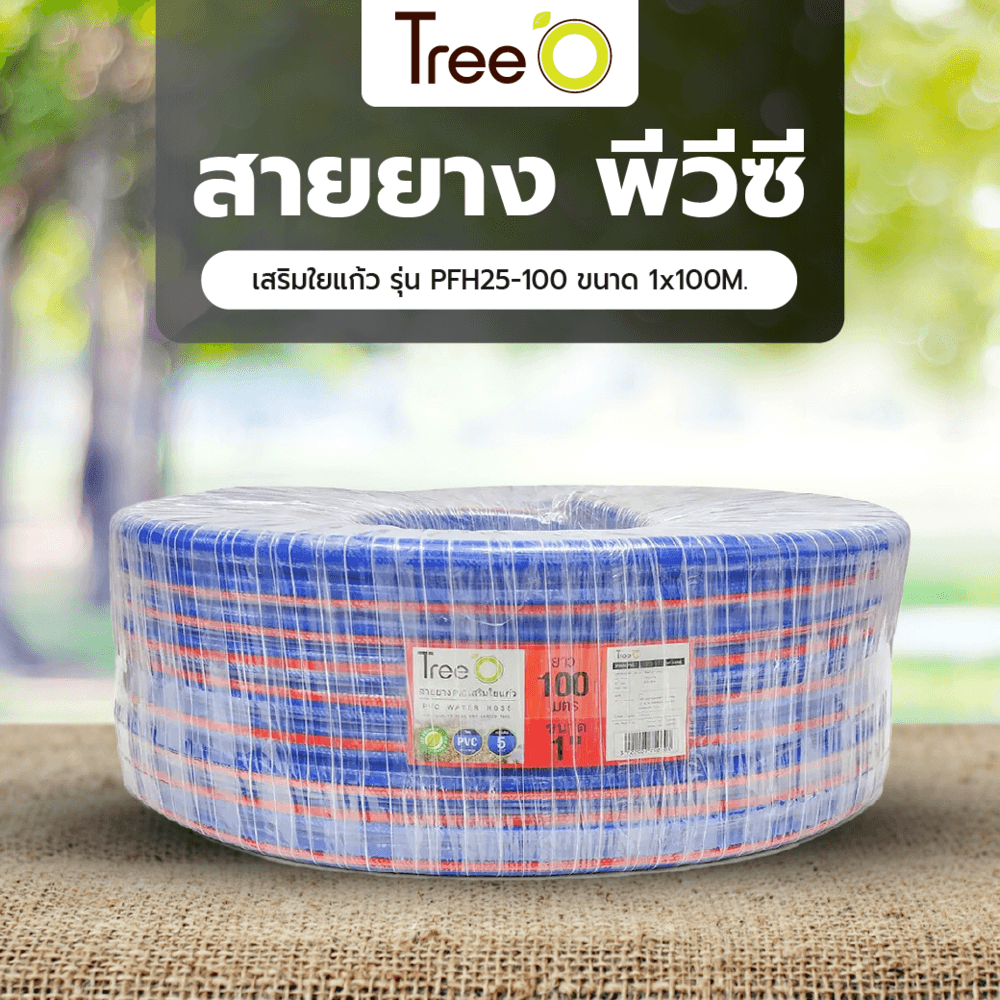 Tree O สายยาง PVC เสริมใยแก้ว รุ่น PFH25-100 ขนาด 1 ยาว 100 เมตร