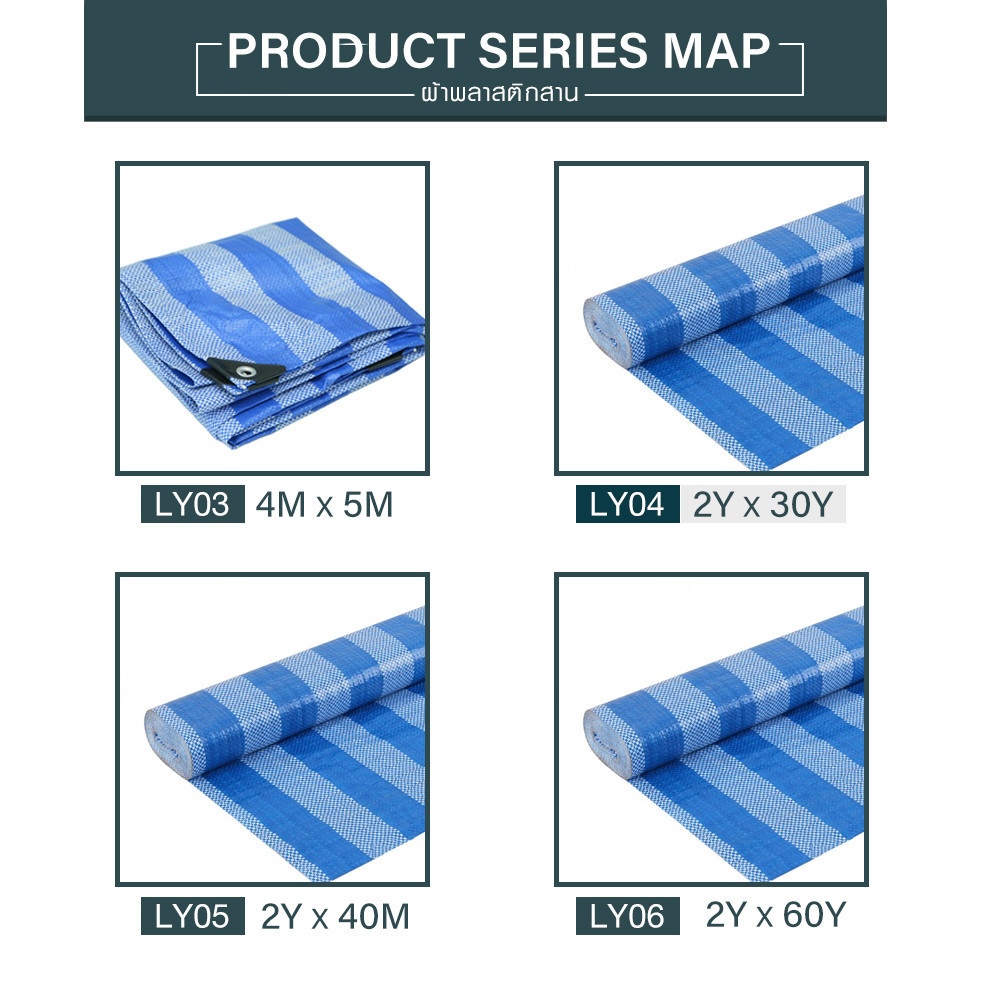 POLLO ผ้าพลาสติกสาน รุ่น LY04 ขนาด 2Y X 30Y. สีฟ้าขาว