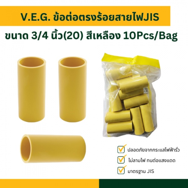 - ปลอดภัยจากกระแสไฟฟ้ารั่ว - ไม่ลามไฟ - เนื้อท่อสีเหลือง - ทนทานต่อแสงแดด - หาซื้อง่าย และน้ำหนักเบา - มาตรฐาน JIS