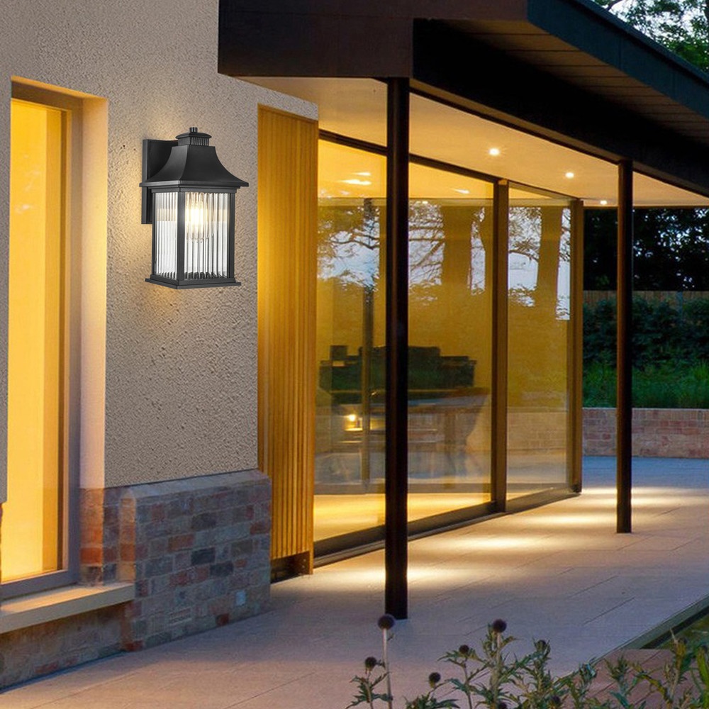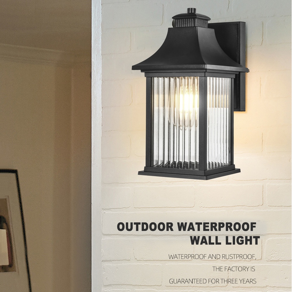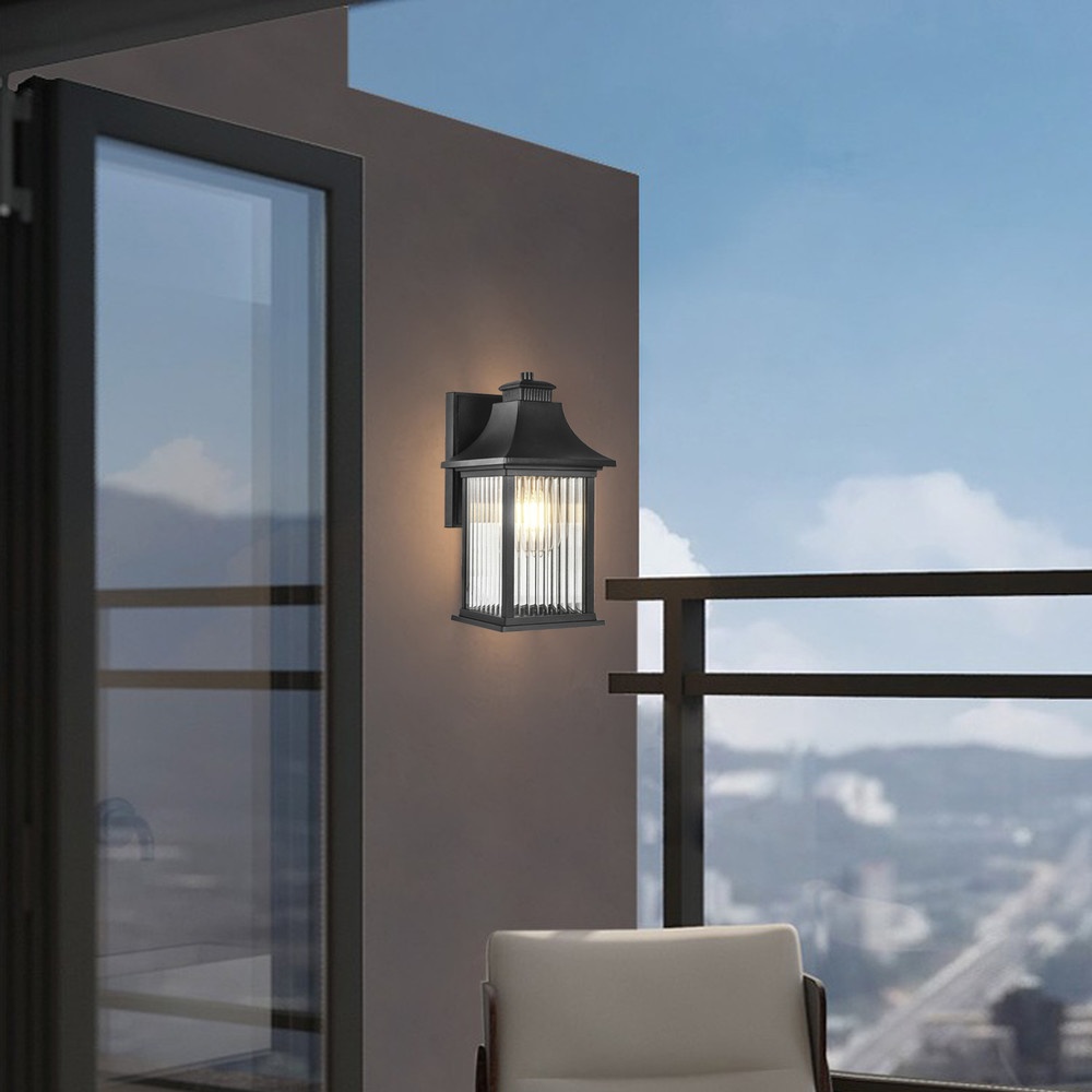 โคมไฟโพสต์ดีไซน์สไตล์อเมริกันเรียบง่าย อลูมิเนียมดีไซน์กระจก ไม่เป็นสนิมหรือแตกหักเมื่อโดนแสงแดดและฝนเป็นเวลานาน