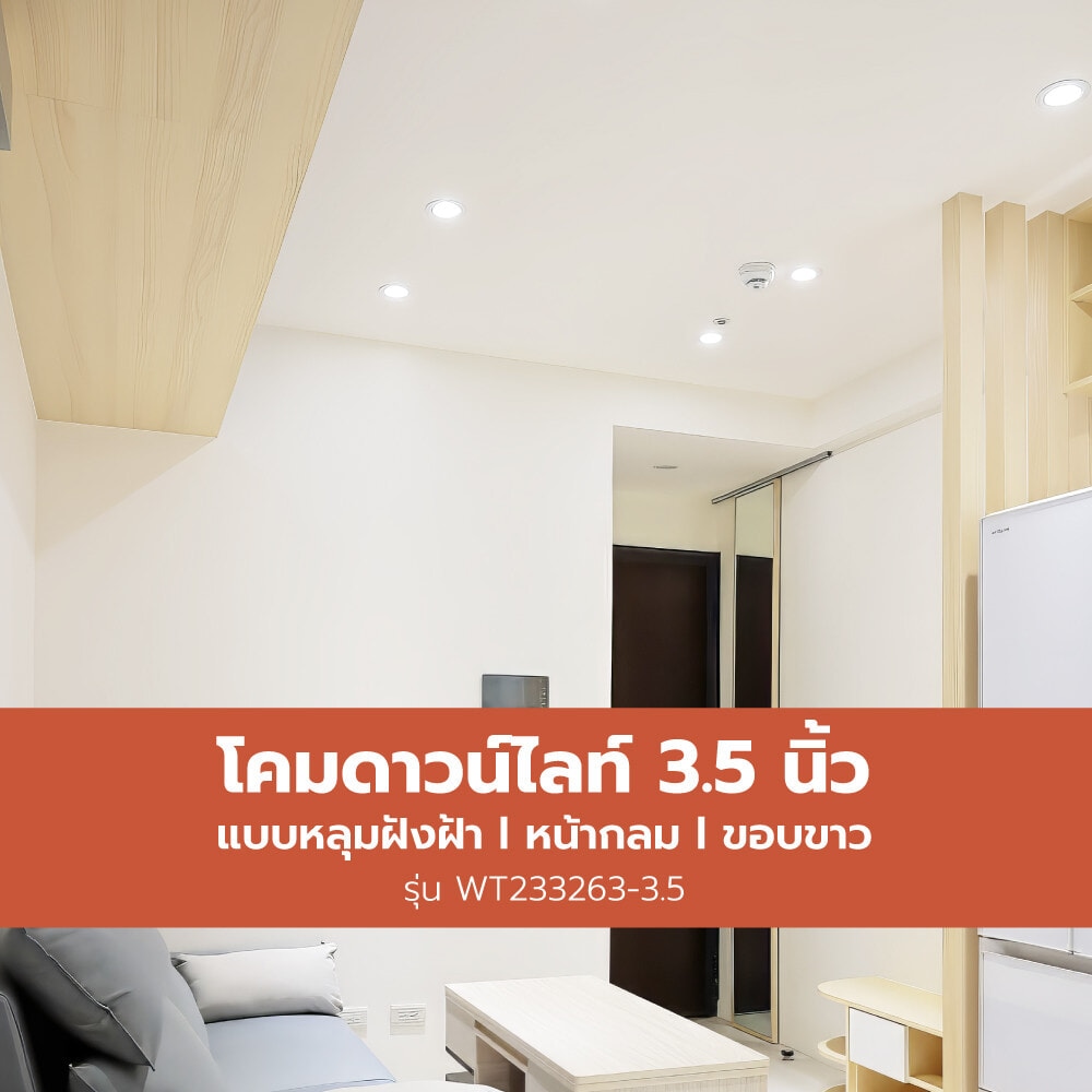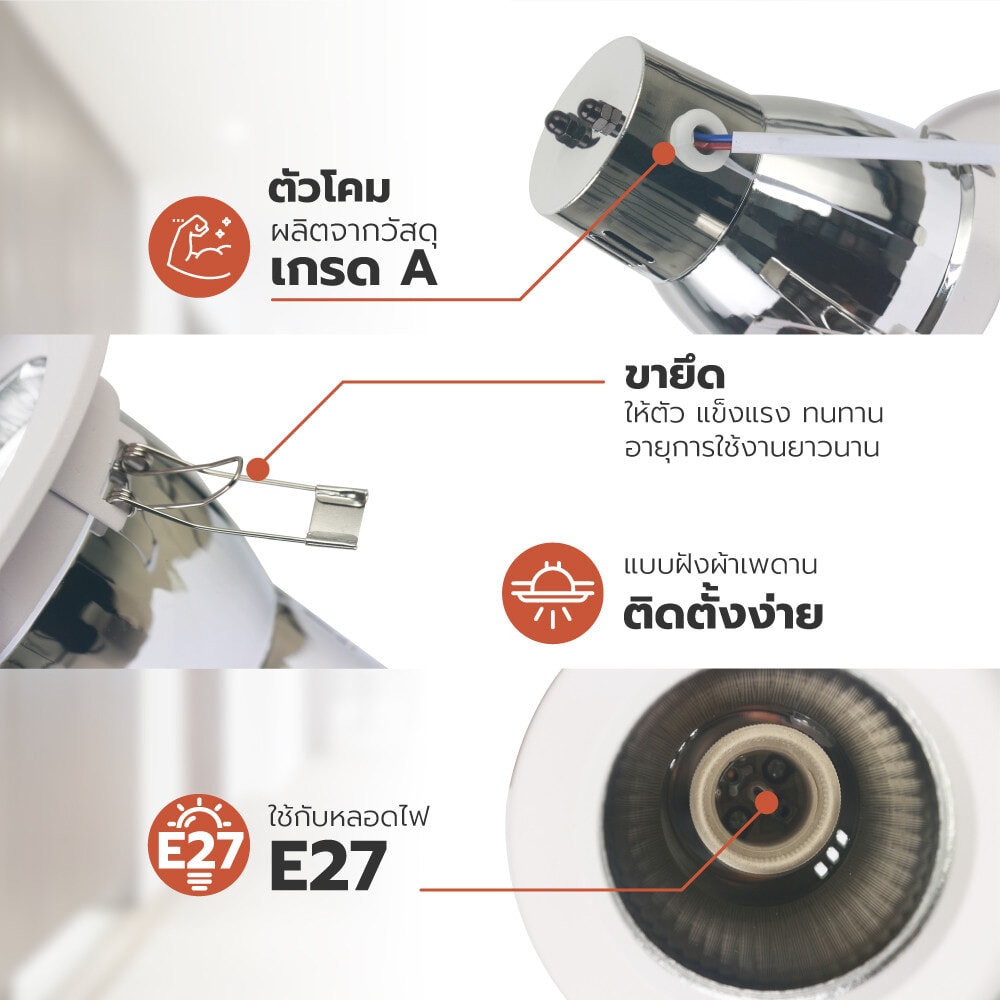 โคมดาวน์ไลท์แบบหลุมฝังฝ้าหน้ากลม V.E.G. รุ่น WT233263-3.5 ขอบขาว 3.5 นิ้ว E27 มีรายละเอียดสินค้าดังนี้: