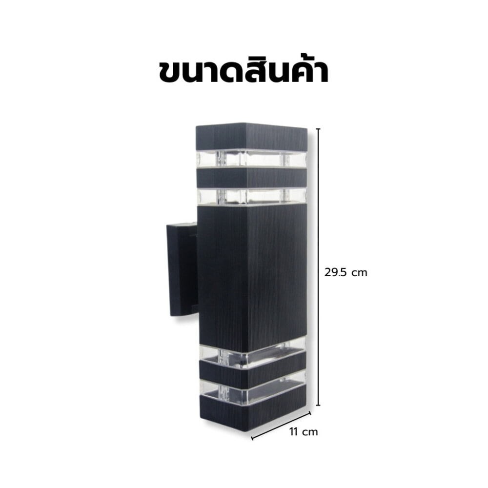เป็นโคมเปล่าขั้วหลอด E27 ใช้สำหรับใส่หลอดไฟ ขั้วหลอด E27 จำนวน 2 หลอด แรงดันไฟฟ้า 220-240V โครงสร้างวัสดุผลิตจากวัสดุ PVC+PC รูปทรงสไตล์โมเดิร์น ใช้ประดับตกแต่งภายนอกเพื่อให้แสงสว่างพื้นที่ภายนอกบ้าน