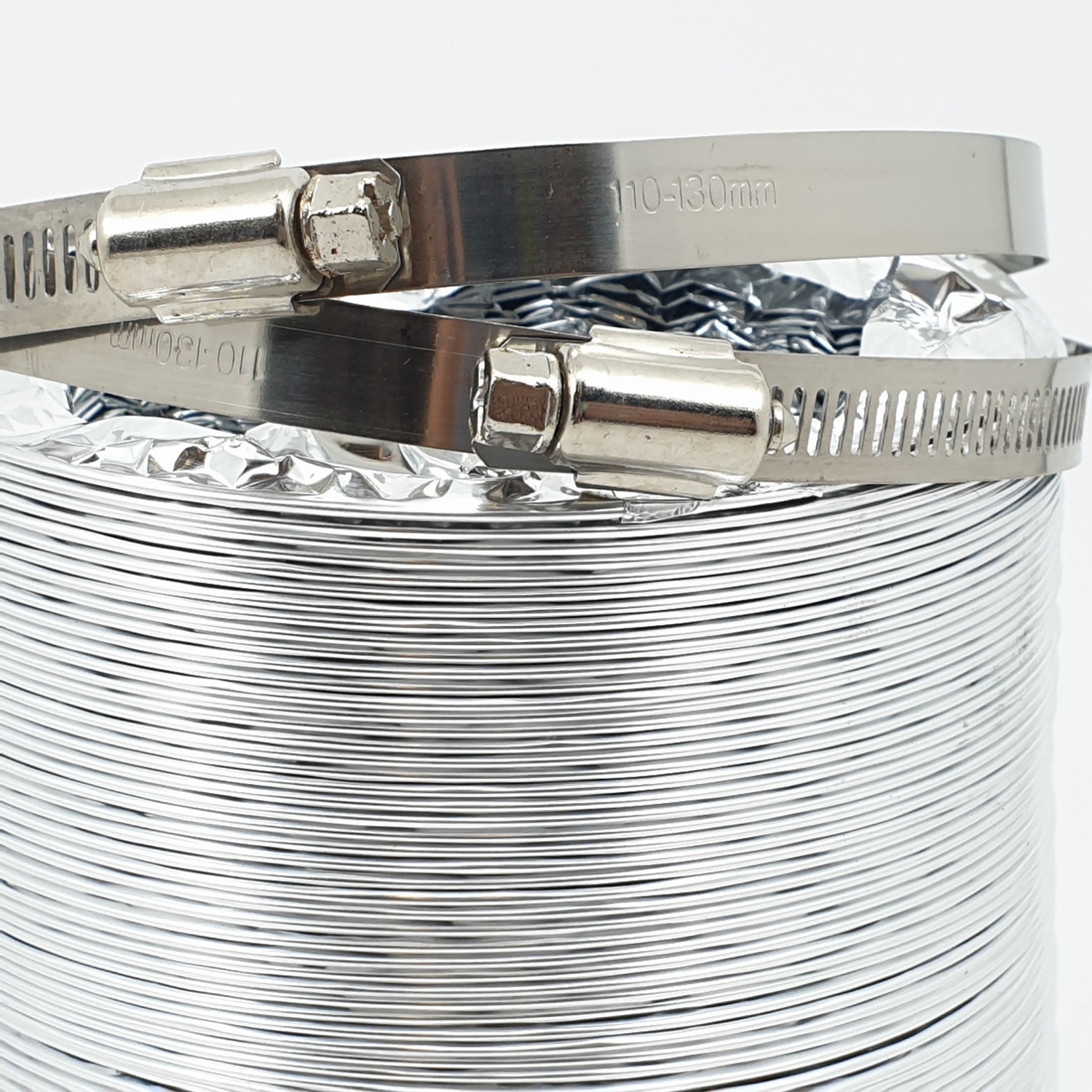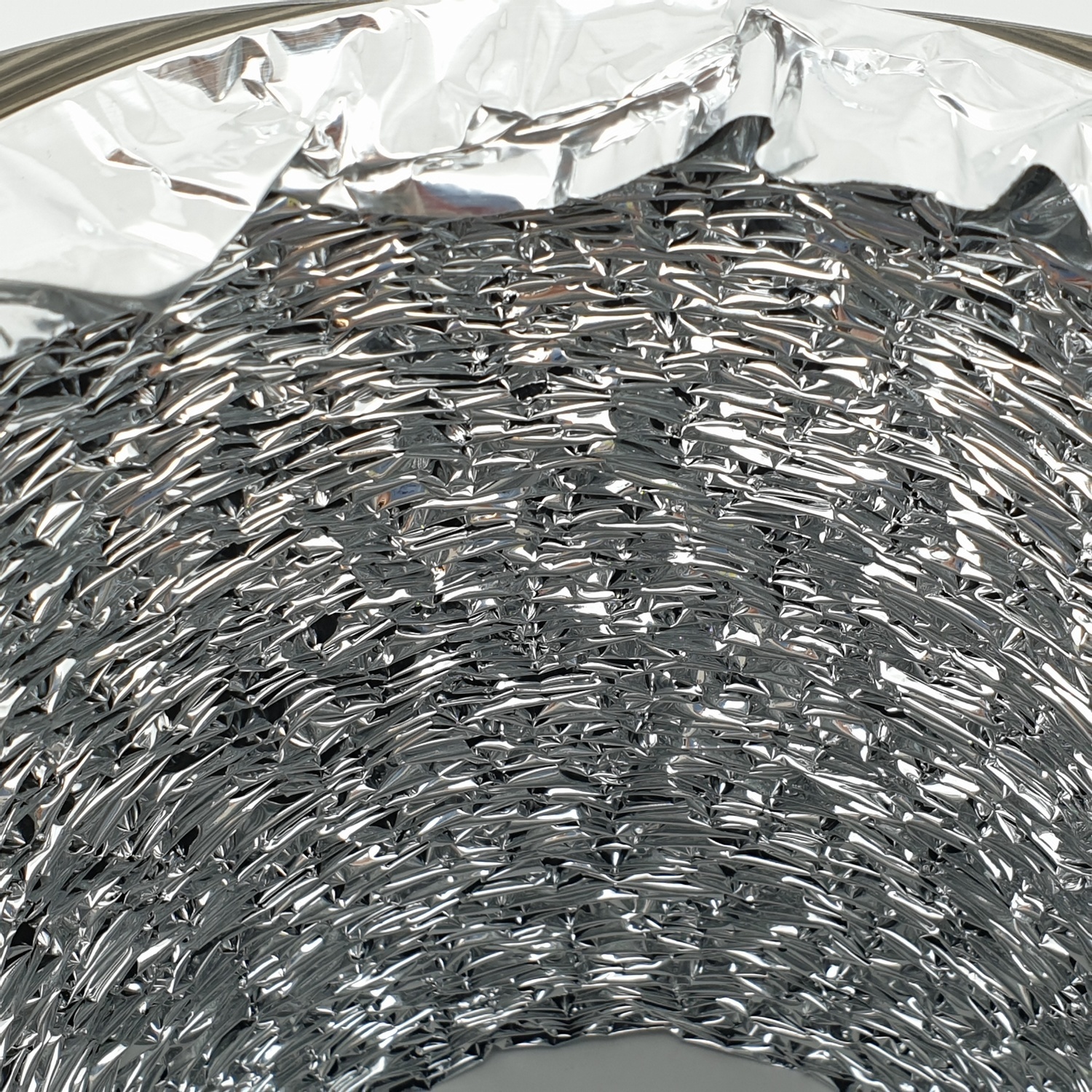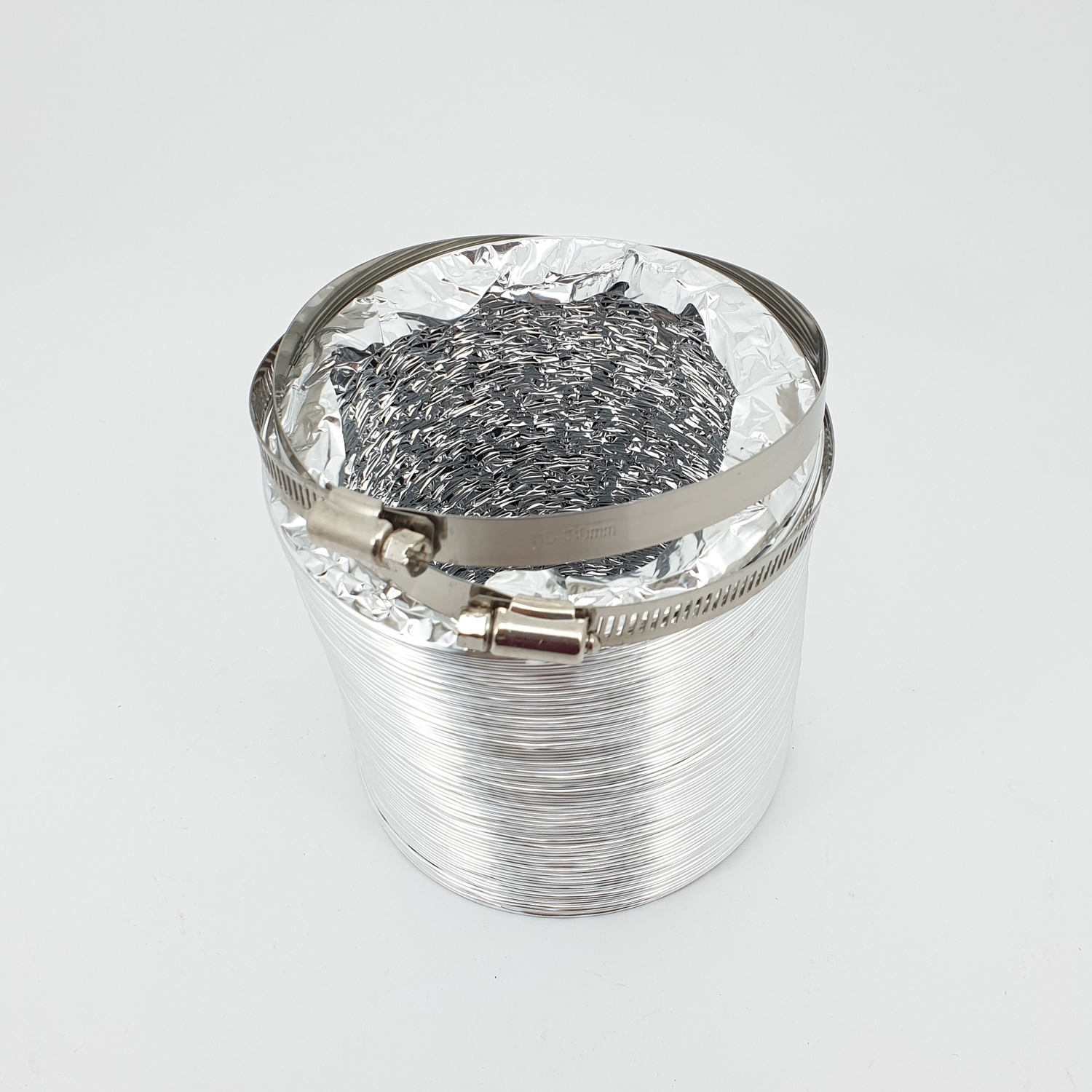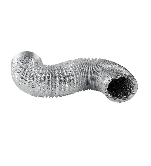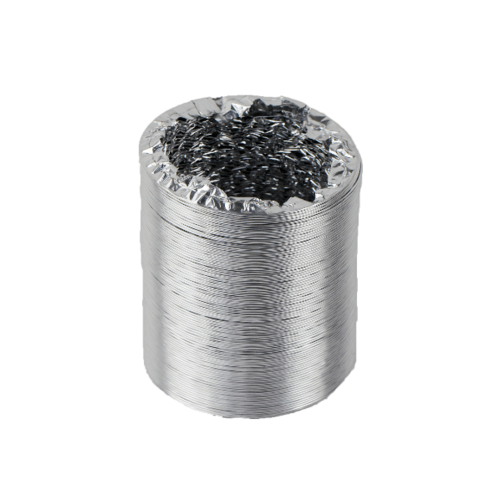ท่อลมแบบอะลูมิเนียมฟอยล์ชนิดยืดหยุ่น ท่อลมชนิดยืดหยุ่นสูง ทำจากอะลูมิเนียมฟอยล์ 2 หน้าประกบหนา 2 ชั้น ยึดติดด้วยกาวอคริลิคชนิดพิเศษ เสริมโครงสร้างด้วยลวดสปริงชุบโลหะ ระยะห่างระหว่างโครงลวดสปริง 25 มม. แข็งแรงทนทาน ไม่ติดไฟ รักษารูปทรงได้ง่าย เหมาะสำหรับงานระบบท่อส่งแอร์, ท่อเครื่องอบผ้า, ท่อระบายอากาศ และท่อดูดควัน