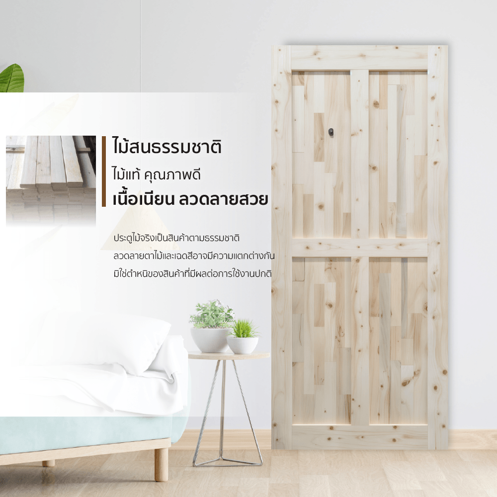 ประตูไม้สน ลดปัญหาการบิด หัก งอ ไม่แตกง่าย ลวดลายไม้สวยงามอย่างเป็นธรรมชาติ เหมาะสำหรับติดตั้งใช้งานภายในอาคาร