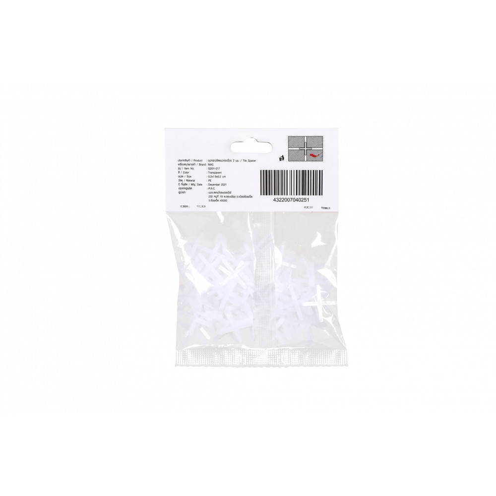 MAC อุปกรณ์จัดแนวกระเบื้อง ขนาด 2 มม. รุ่นSDSY-017 สีขาว (บรรจุ 100 ชิ้น/แพ็ค)