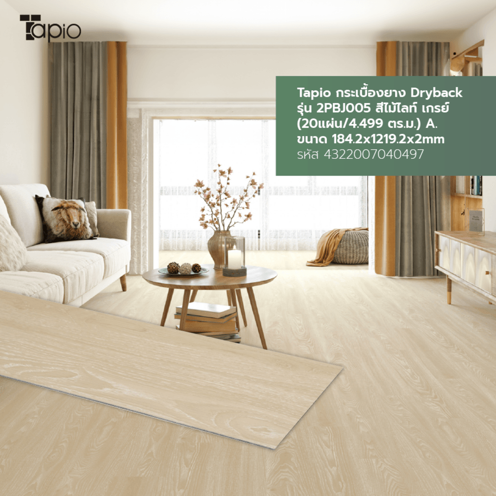 ด้วยคุณสมบัติและจุดเด่นเหล่านี้ Tapio กระเบื้องยาง Dryback รุ่น 2PBJ010 สีไม้ไลท์บราว จึงเหมาะสำหรับผู้ที่ต้องการพื้นที่สวยงาม ทนทาน และง่ายต่อการดูแลรักษา