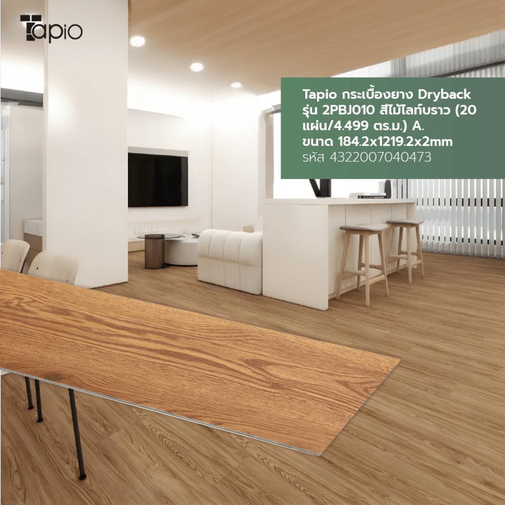 ด้วยคุณสมบัติและจุดเด่นเหล่านี้ Tapio กระเบื้องยาง Dryback รุ่น 2PBJ010 สีไม้ไลท์บราว จึงเหมาะสำหรับผู้ที่ต้องการพื้นที่สวยงาม ทนทาน และง่ายต่อการดูแลรักษา