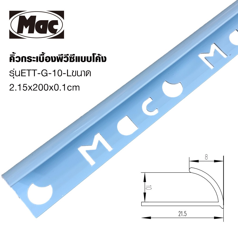 MAC คิ้วกระเบื้องPVC แบบโค้ง ขนาด 10 มม. ยาว 2 เมตร รุ่นETT-G-10-L สีฟ้าเคลือบเงา