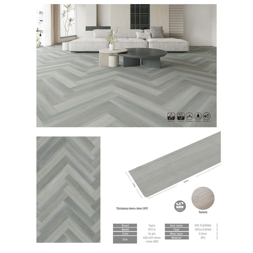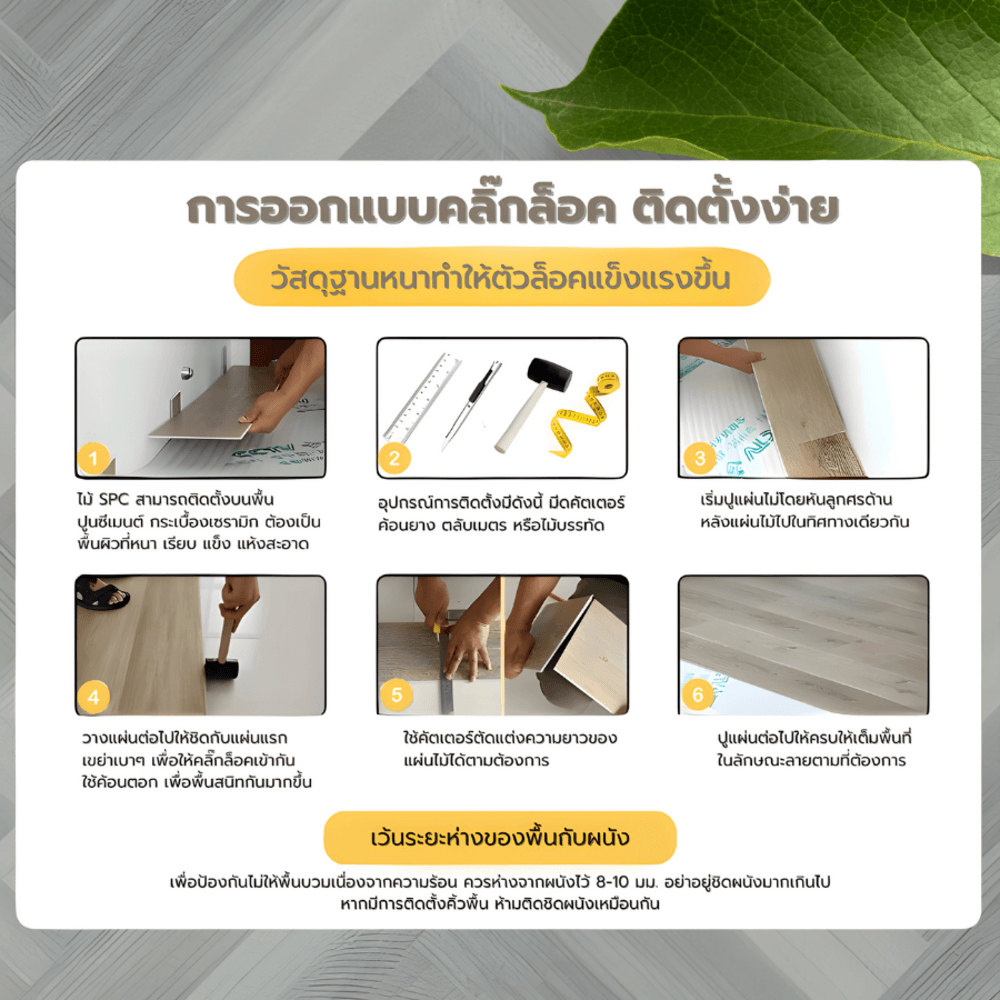 พื้นไม้ SPC หนา 5 มม. พร้อมโฟม IXPE แบบปูลายก้างปลา ติดตั้งง่ายด้วยระบบคลิ๊กล็อก