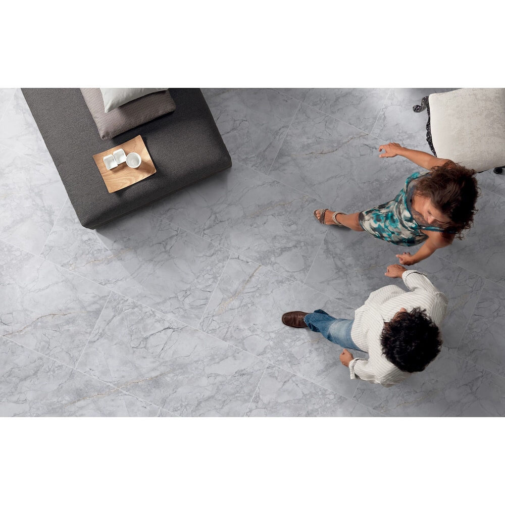 ในการติดตั้งกระเบื้อง แนะนำให้ใช้กาวปูที่มีคุณภาพและเหมาะสมสำหรับกระเบื้องขนาดใหญ่ หลังจากทากาวลงบนพื้น ให้วางกระเบื้องและใช้แรงกดเบาๆ เพื่อให้กระเบื้องยึดติดกับกาวอย่างมั่นคง และเพื่อให้สามารถควบคุมระดับของกระเบื้องได้อย่างแม่นยำ ควรใช้ตัวปรับระดับกระเบื้อง (Tile Leveling System) ซึ่งช่วยให้กระเบื้องเรียบเสมอกันและป้องกันการเกิดรอยต่อที่ไม่สวยงามระหว่างกระเบื้อง นอกจากนี้ ก่อนการติดตั้ง ควรตรวจสอบเฉดสีและล็อตการผลิตของกระเบื้องทุกครั้ง เพื่อให้มั่นใจว่ากระเบื้องมีสีและลวดลายที่ตรงกัน ซึ่งจะช่วยให้ได้ผลลัพธ์ที่สวยงามและมีความสม่ำเสมอ