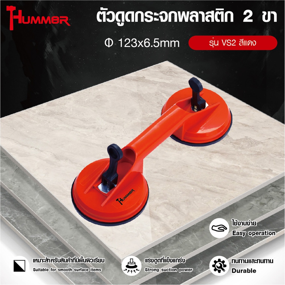 ให้การขนย้ายชิ้นงานต่าง ๆ สะดวกยิ่งขึ้นด้วยตัวดูดกระจก ด้วย HUMMER ตัวดูดกระจกพลาสติก ที่ออกแบบมาให้คุณสามารถเคลื่อนย้ายอุปกรณ์ หรือชิ้นส่วนต่าง ๆ ได้รวดเร็วและปลอดภัยยิ่งขึ้น ไม่ว่าจะเป็น กระจกทั้งแบบผิวเรียบตรงและผิวโค้ง, กระเบื้อง, หินอ่อน, เหล็ก หรือวัสดุอื่น ๆ ที่มีผิวเรียบ เพื่อป้องกันความเสียหายของวัสดุที่ขนย้าย รวมถึงอันตรายของผู้ใช้งานจากการยกที่ไม่ถูกวิธี
