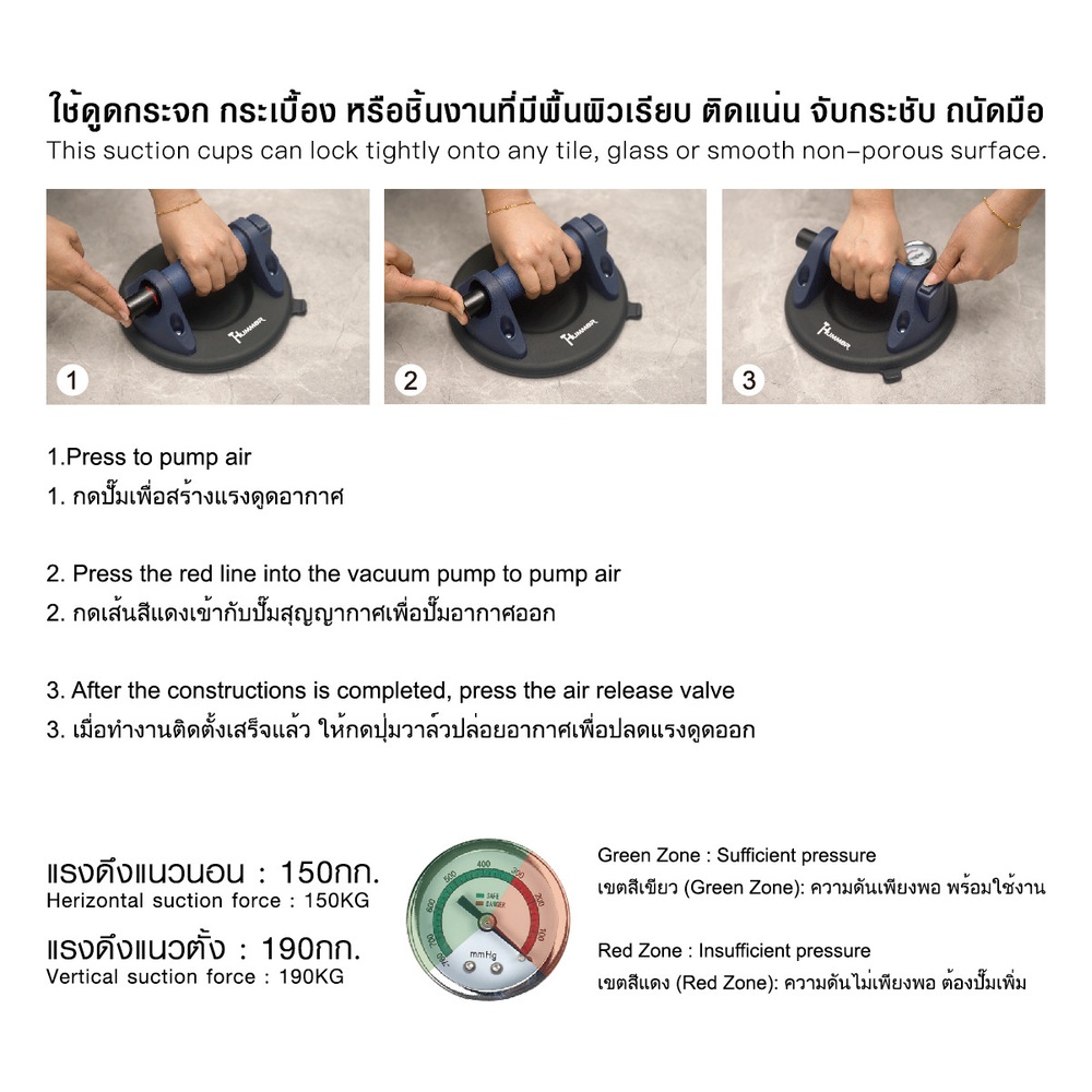 ให้การขนย้ายชิ้นงานต่าง ๆ สะดวกยิ่งขึ้นด้วยตัวดูดกระจก ด้วย HUMMER ตัวดูดกระจกพลาสติก ที่ออกแบบมาให้คุณสามารถเคลื่อนย้ายอุปกรณ์ หรือชิ้นส่วนต่าง ๆ ได้รวดเร็วและปลอดภัยยิ่งขึ้น ไม่ว่าจะเป็น กระจกทั้งแบบผิวเรียบตรงและผิวโค้ง, กระเบื้อง, หินอ่อน, เหล็ก หรือวัสดุอื่น ๆ ที่มีผิวเรียบ เพื่อป้องกันความเสียหายของวัสดุที่ขนย้าย รวมถึงอันตรายของผู้ใช้งานจากการยกที่ไม่ถูกวิธี