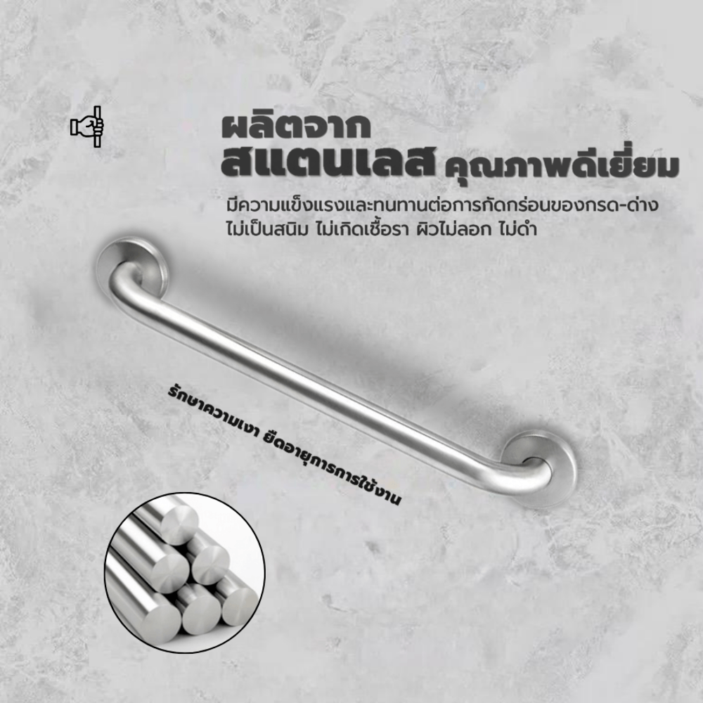 ราวมือจับกันลื่น แบบตรง จากแบรนด์ Verno รุ่น VN-83275 ความยาว 75 ซม. อุปกรณ์เสริมที่ช่วยอำนวยความสะดวกในการยึดจับใช้งานภายในห้องน้ำ ตัวราวผลิตจากสเตนเลสคุณภาพดีเยี่ยม ไม่เป็นสนิม จึงใช้งานได้ยาวนานขึ้น มีความแข็งแรง ทั้งยังมีรูปทรงที่จับได้กระชับมือ เหมาะสำหรับติดตั้งบนผนังข้างเก้าอี้อาบน้ำหรือบริเวณโถสุขภัณฑ์