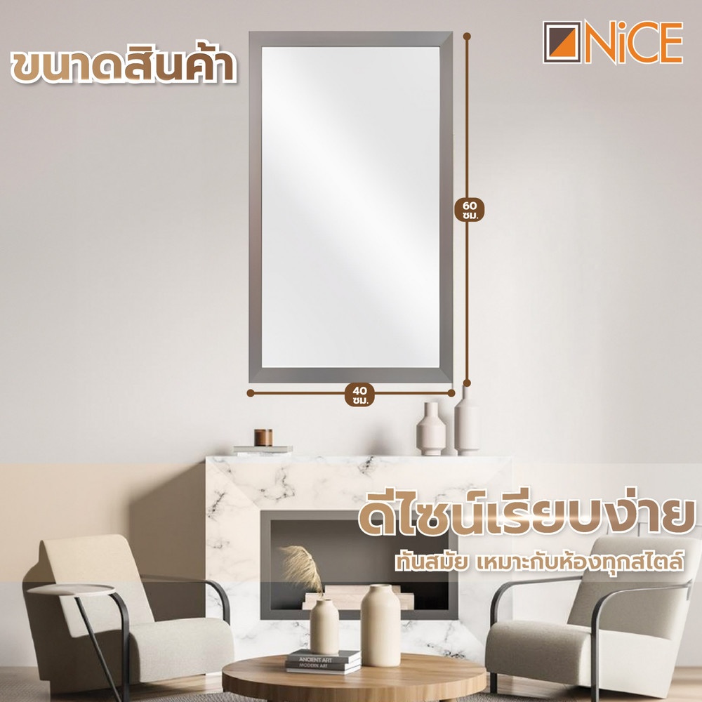 Nice กระจกมีกรอบ รุ่น 1068-S-394 ขนาด 40X60 ซม. สีเงิน