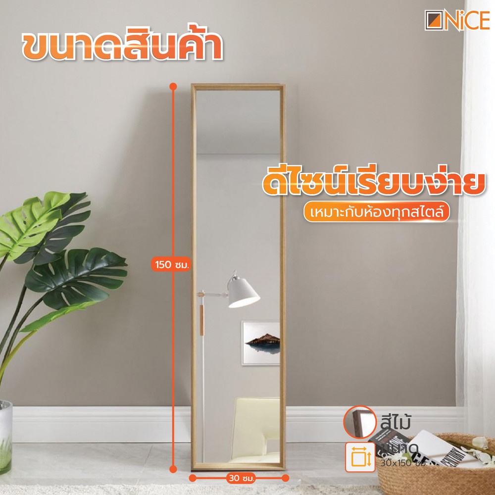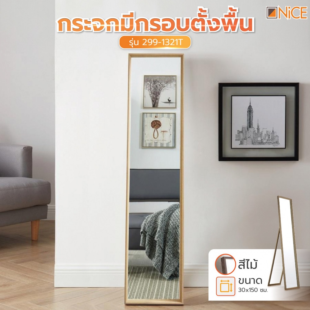 Nice กระจกมีกรอบตั้งพื้น รุ่น 299-1321T ขนาด 30x150 ซม. สีไม้