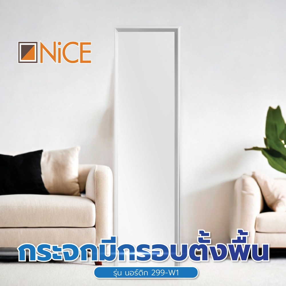 Nice กระจกมีกรอบตั้งพื้น รุ่น นอร์ดิก 299-W1 ขนาด 30x150 ซม. สีขาว