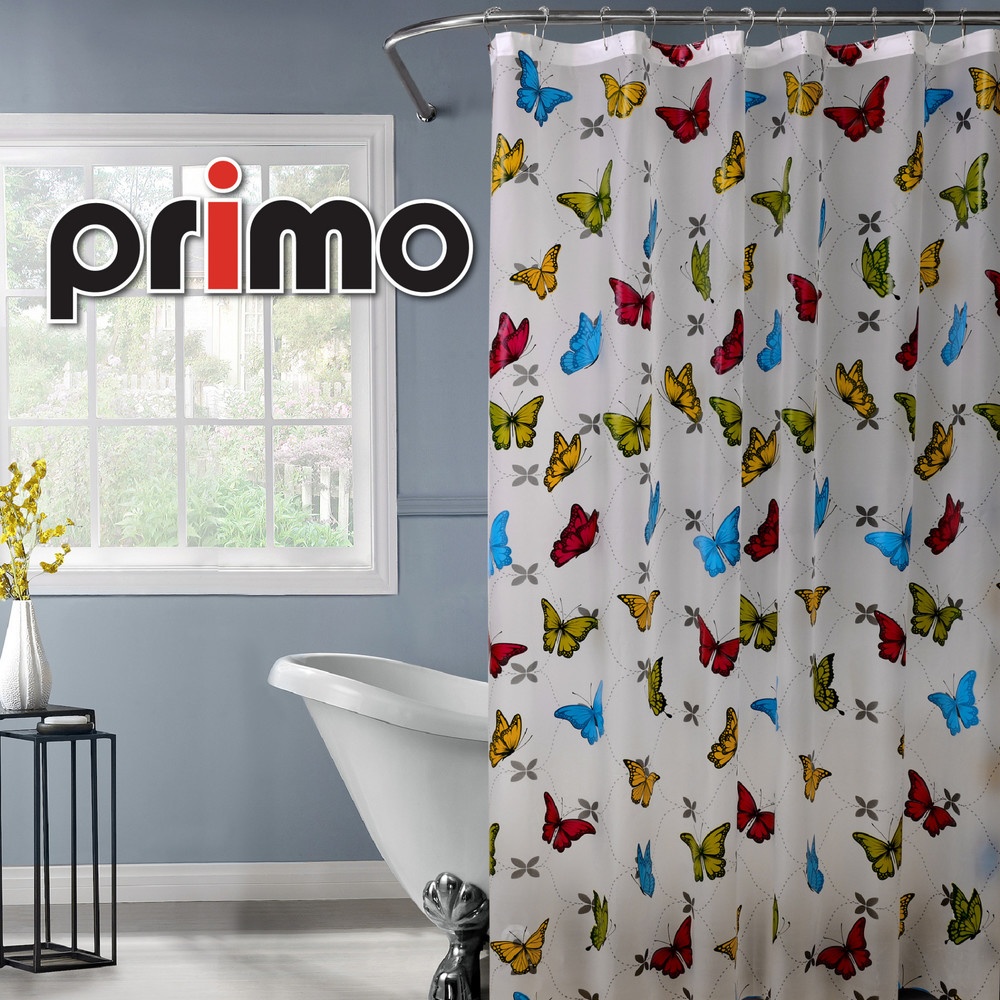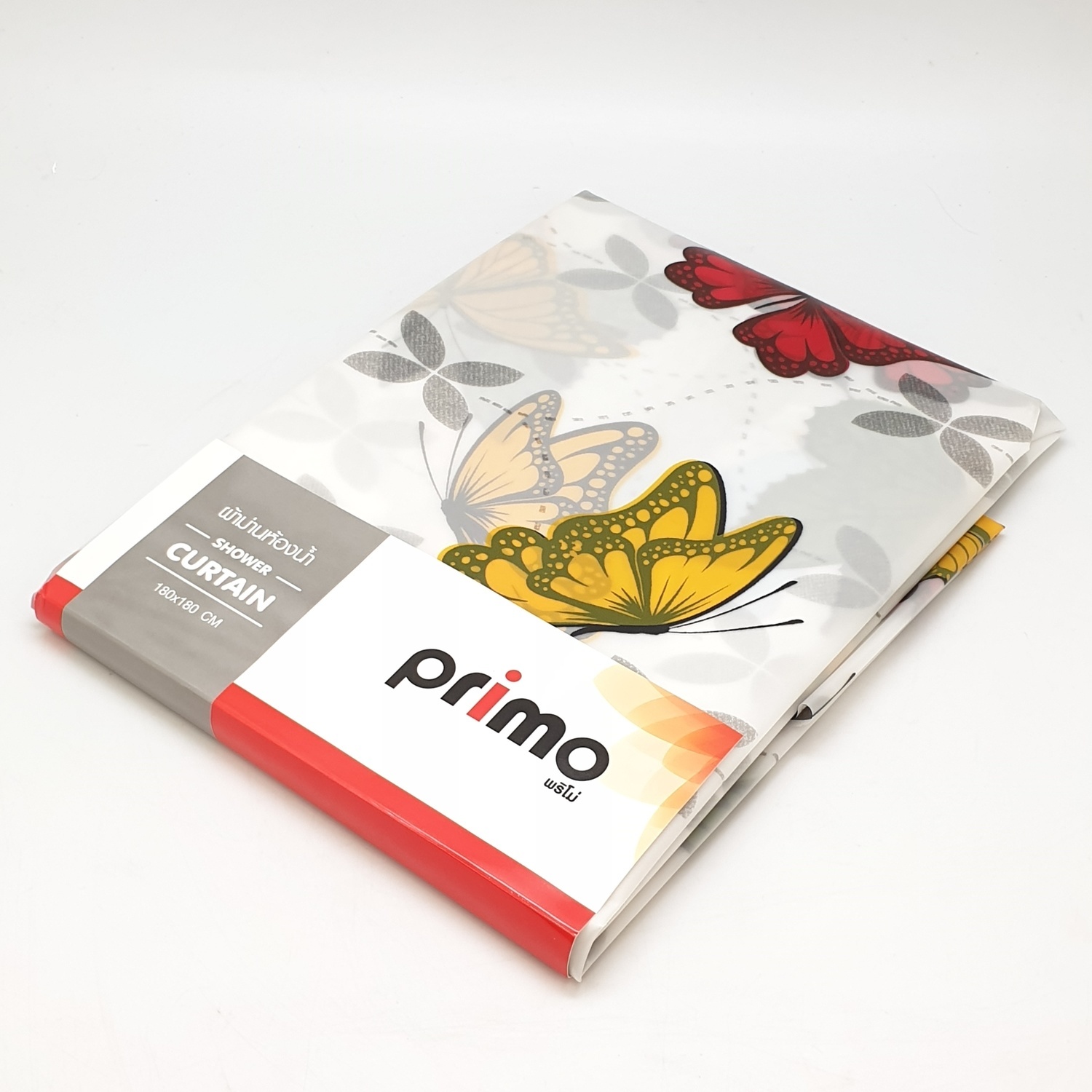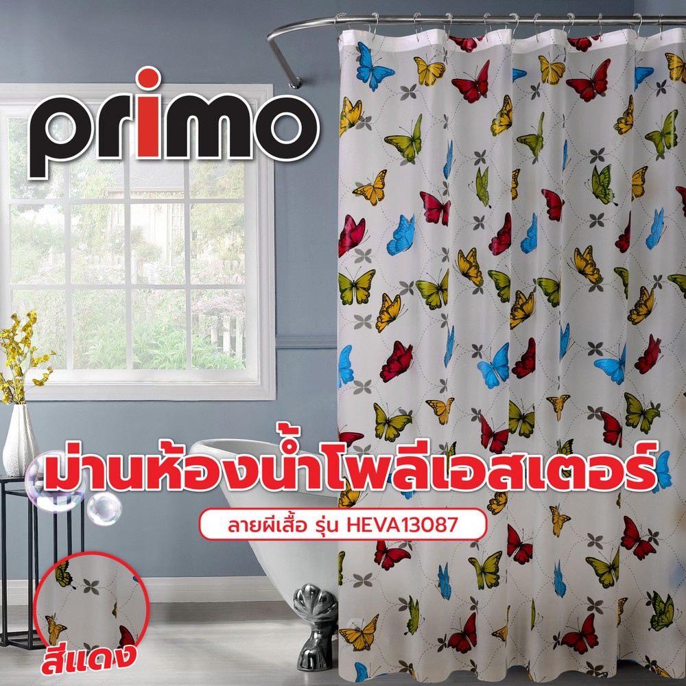 Primo ม่านห้องน้ำโพลีเอสเตอร์ ลายผีเสื้อ รุ่น HEVA13087 ขนาด 180x180 ซม. สีแดง