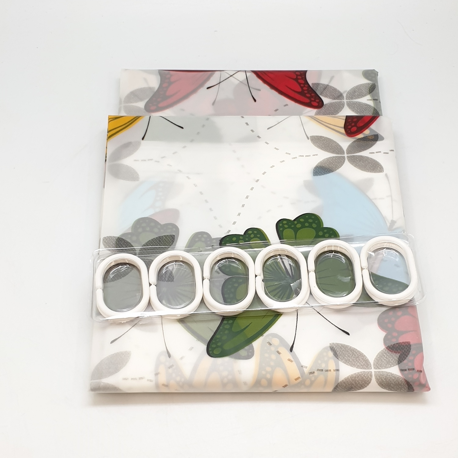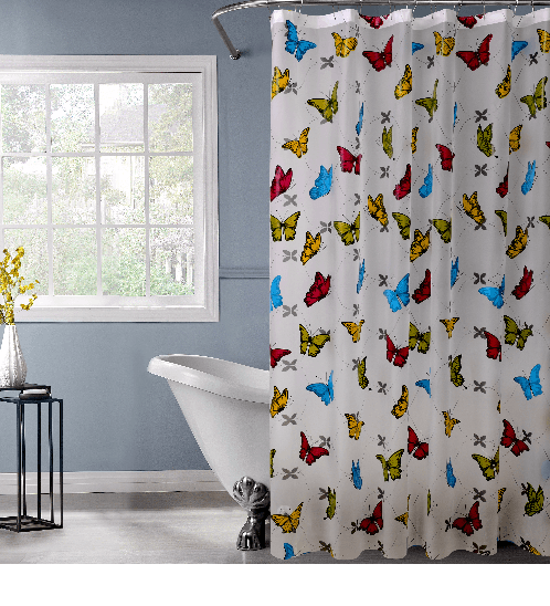 ม่านผลิตจากพลาสติก PVC พิมพ์สีและลายสวยงาม เนื้อพลาสติกหนา เหนียว ทนทาน ไม่ม้วนงอง่าย ไม่เกิดเชื้อรา สีไม่ลอกหลุดอย่างแน่นอน ให้ความสวยงามทันสมัย ป้องกันไม่ให้น้ำกระเด็นขณะอาบน้ำได้เป็นอย่างดี ทำความสะอาดง่าย น้ำหนักเบา จัดเก็บได้ง่าย ใช้งานได้ยาวนาน