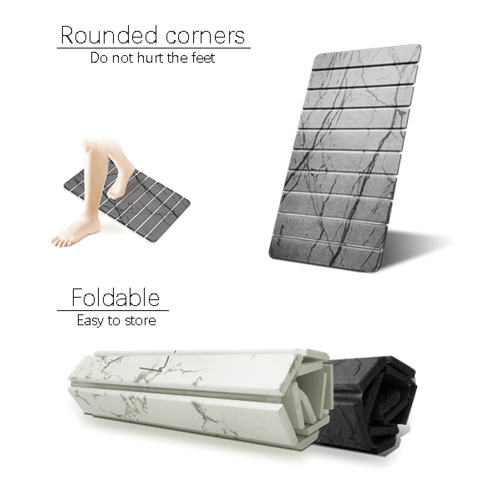 • เมื่อคุณก้าวออกจากห้องน้ำ หรือ อ่างอาบน้ำในขณะที่เท้าเปียก ยืนบน Bath mat นี้ สักครู่ น้ำจะถูกดูดลงไปและแห้งอย่างรวดเร็ว ไม่มีน้ำติดเท้าออกมาต่างจากการใช้พรมเช็ดเท้าแบบผ้าธรรมดา ที่อาจจะทำให้ลื่นล้มได้