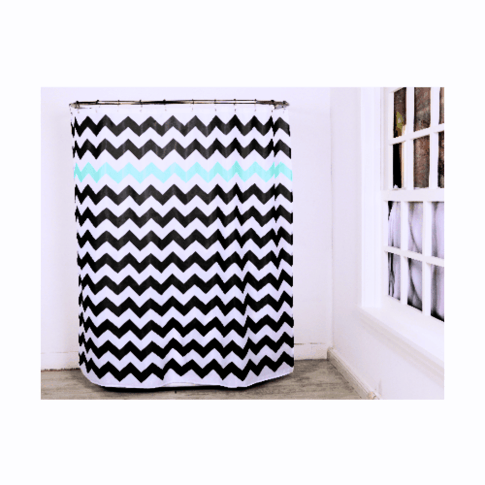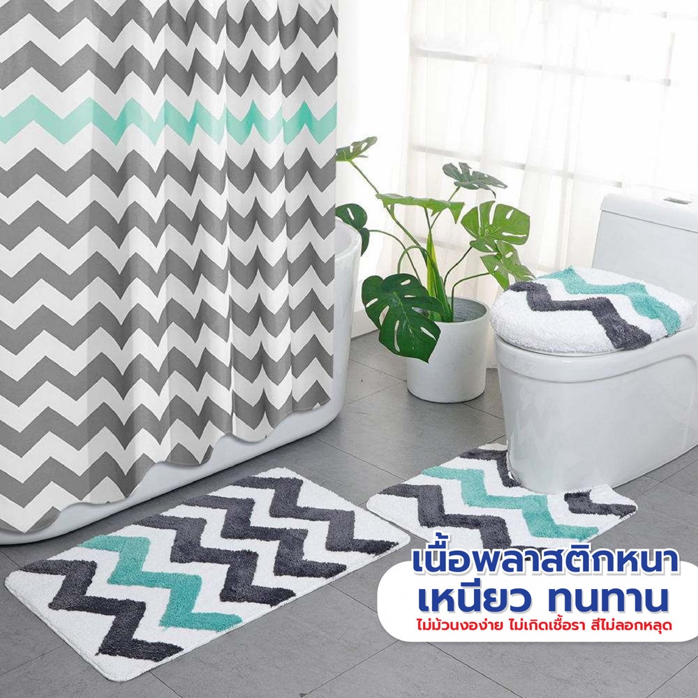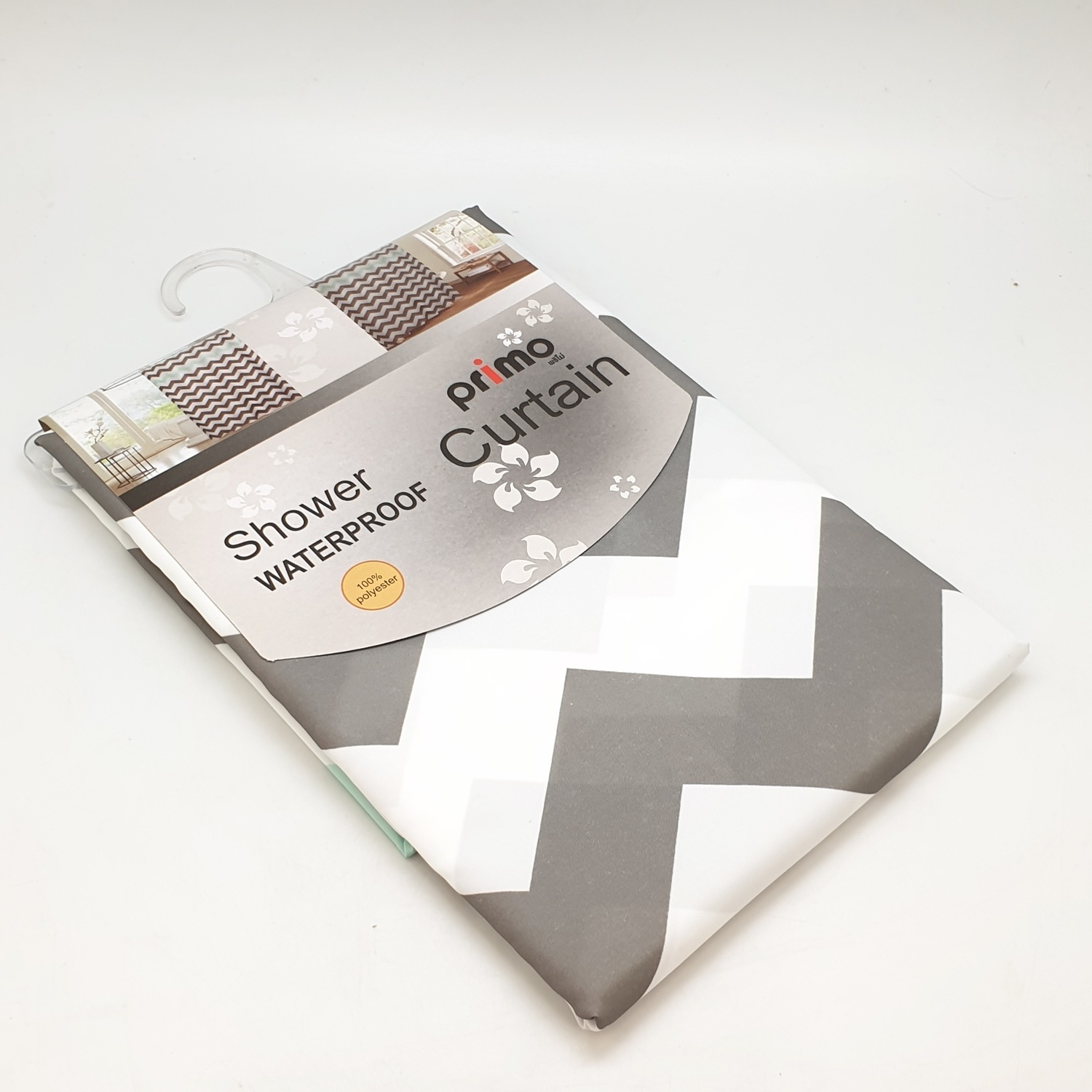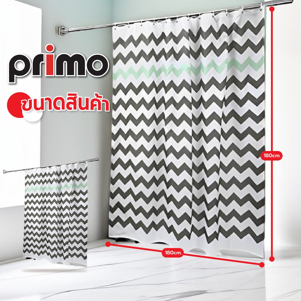 Primo ม่านห้องน้ำโพลีเอสเตอร์ ลายกราฟฟิกคาดฟ้า รุ่น DDF001-BU ขนาด 180x180 ซม. สีเทา