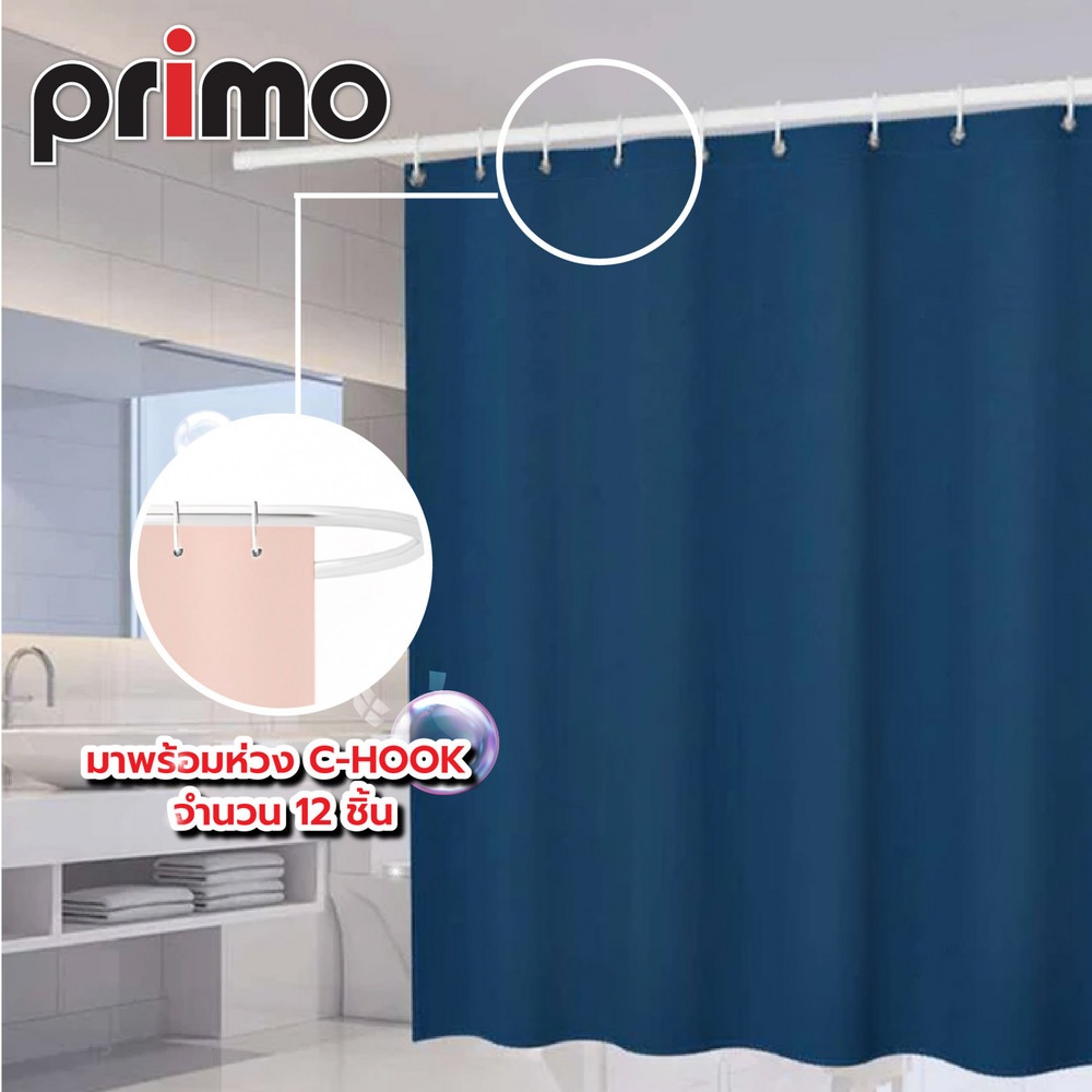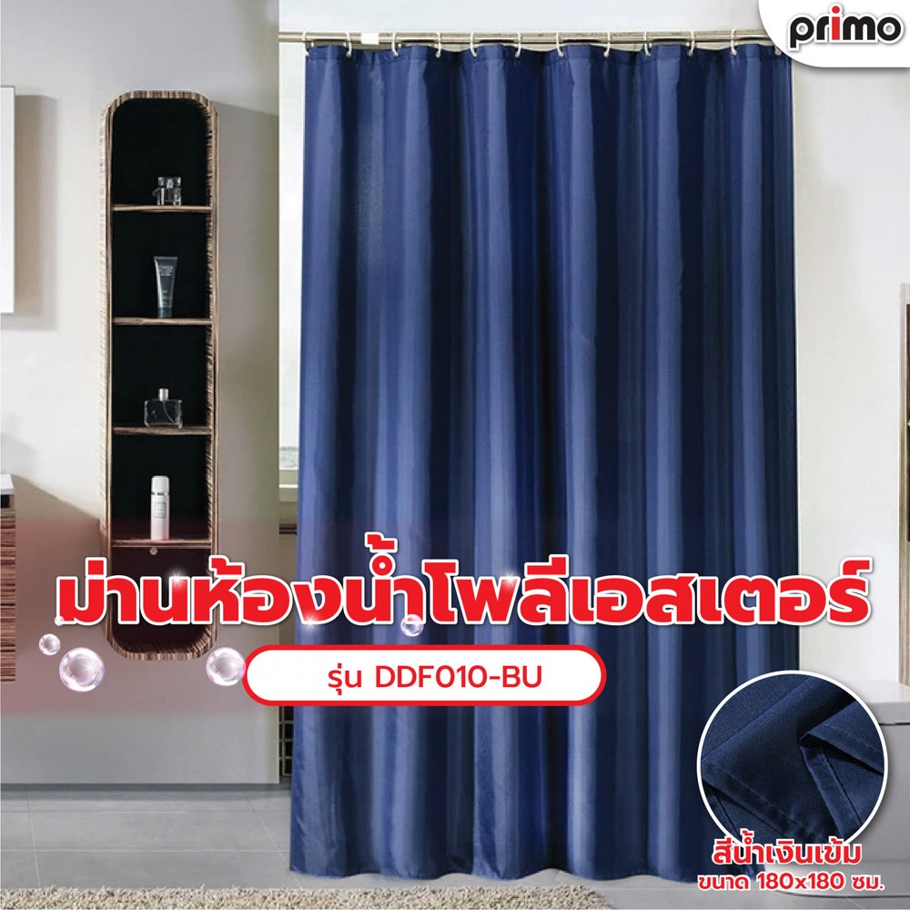 Primo ม่านห้องน้ำโพลีเอสเตอร์ รุ่น DDF010-BU ขนาด 180x180 ซม. สีน้ำเงินเข้ม