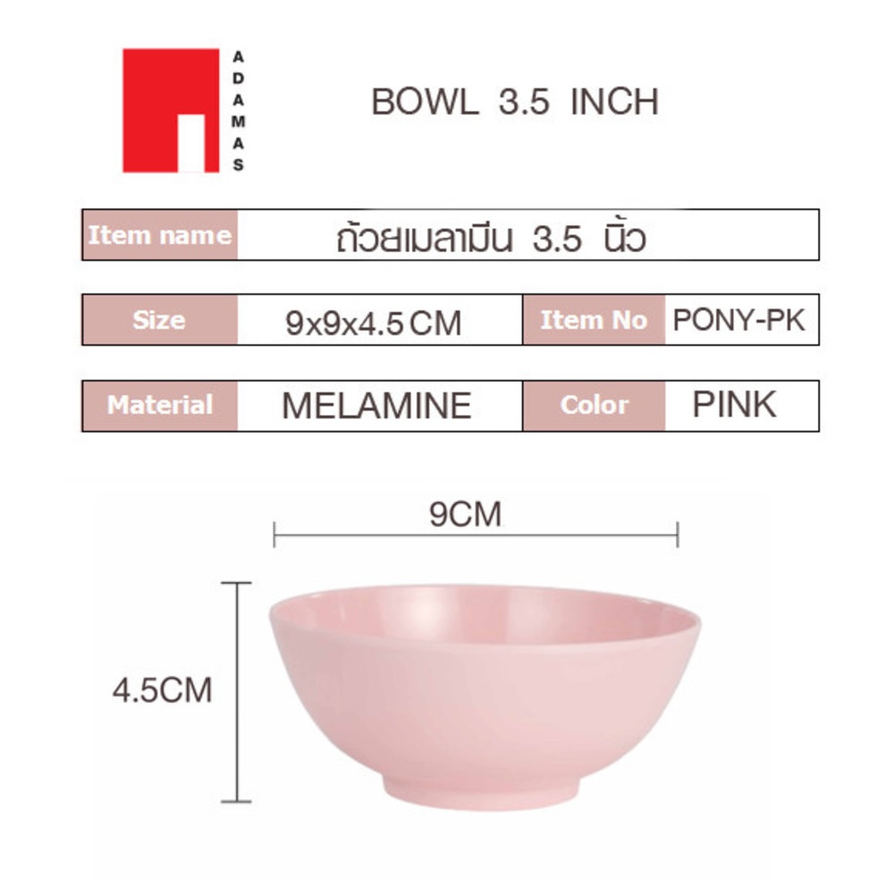 ADAMAS ถ้วยเมลามีน 3.5 นิ้ว สีชมพู PONY-PK