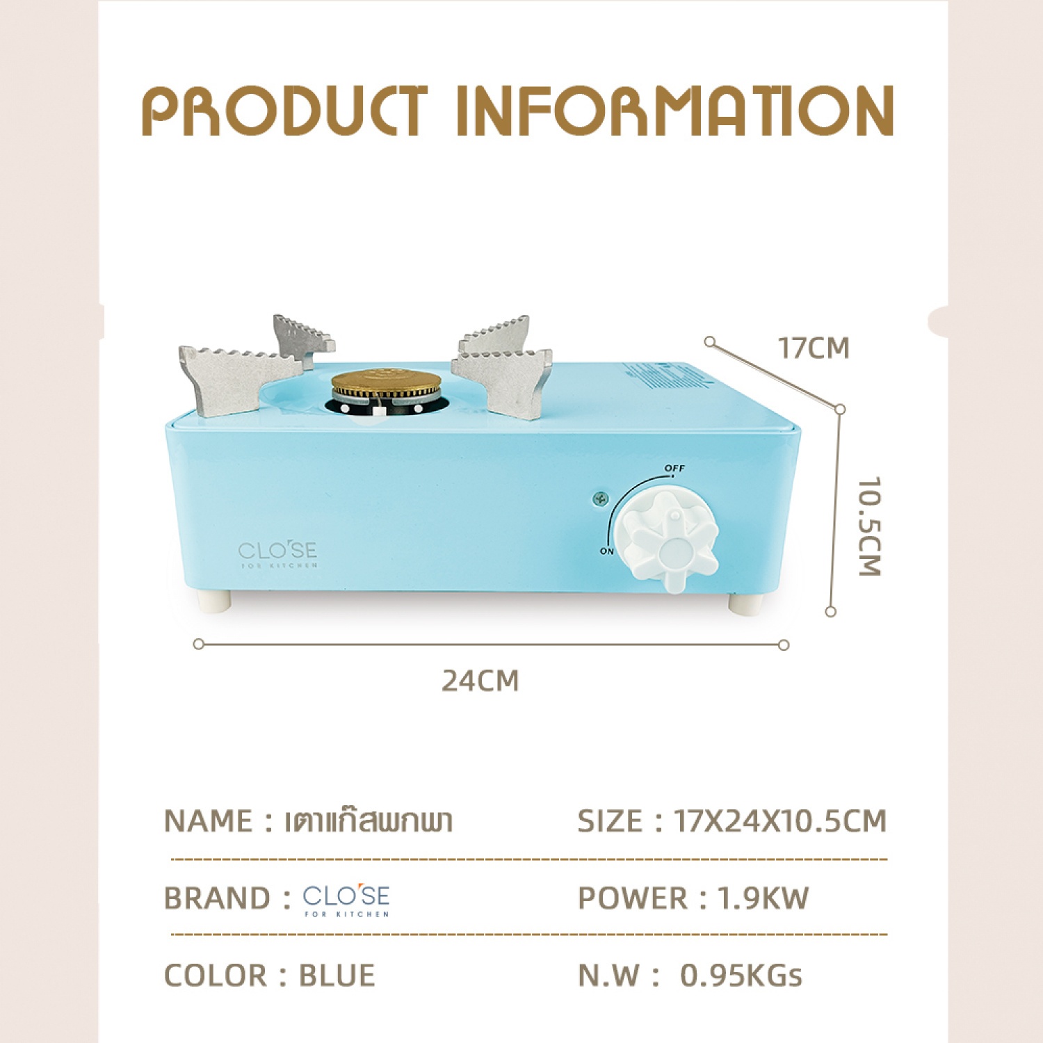 CLOSE เตาแก๊สพกพา 17x24x10.5ซม. AN-YONG สีฟ้า