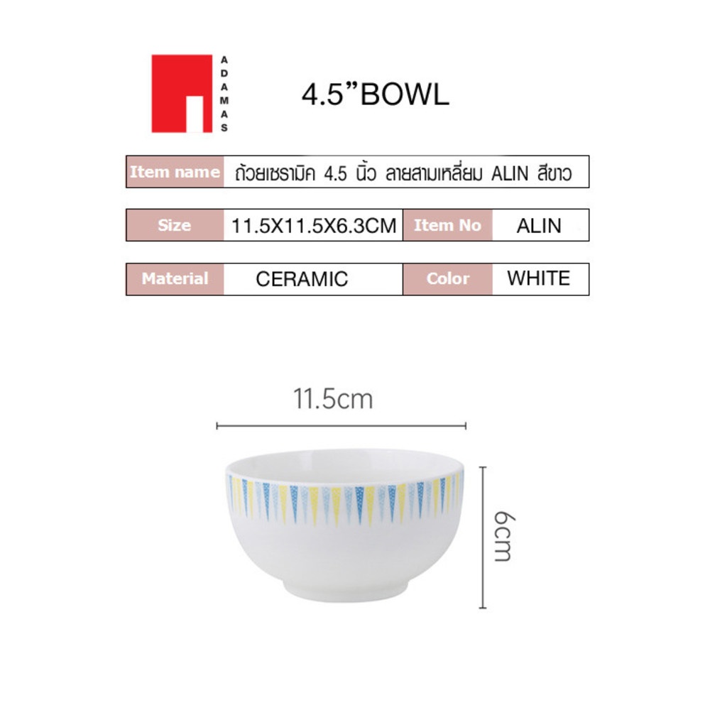 ADAMAS ถ้วยเซรามิค 4.5 นิ้ว ลายสามเหลี่ยม ALIN สีขาว