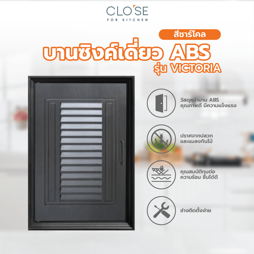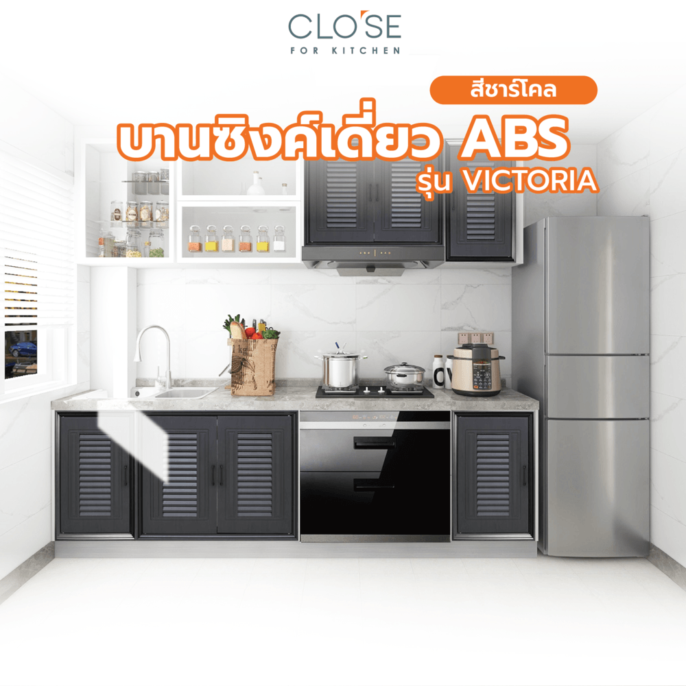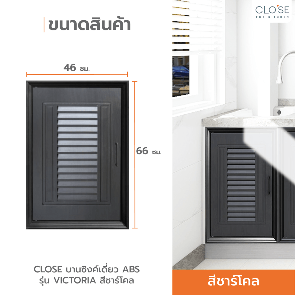 CLOSE บานซิงค์เดี่ยว ABS ขนาด 46x66 ซม. VICTORIA สีชาร์โคล