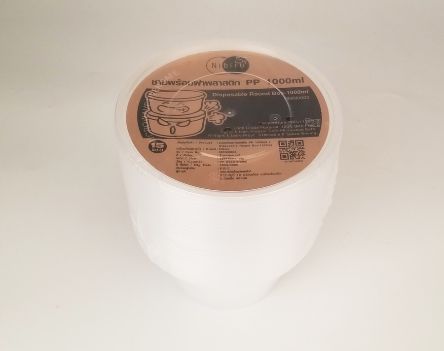 NIBIRU ชามพร้อมฝาพลาสติก PP 1000ml. ( 15ชิ้้น/Pack) Ki-Re-I