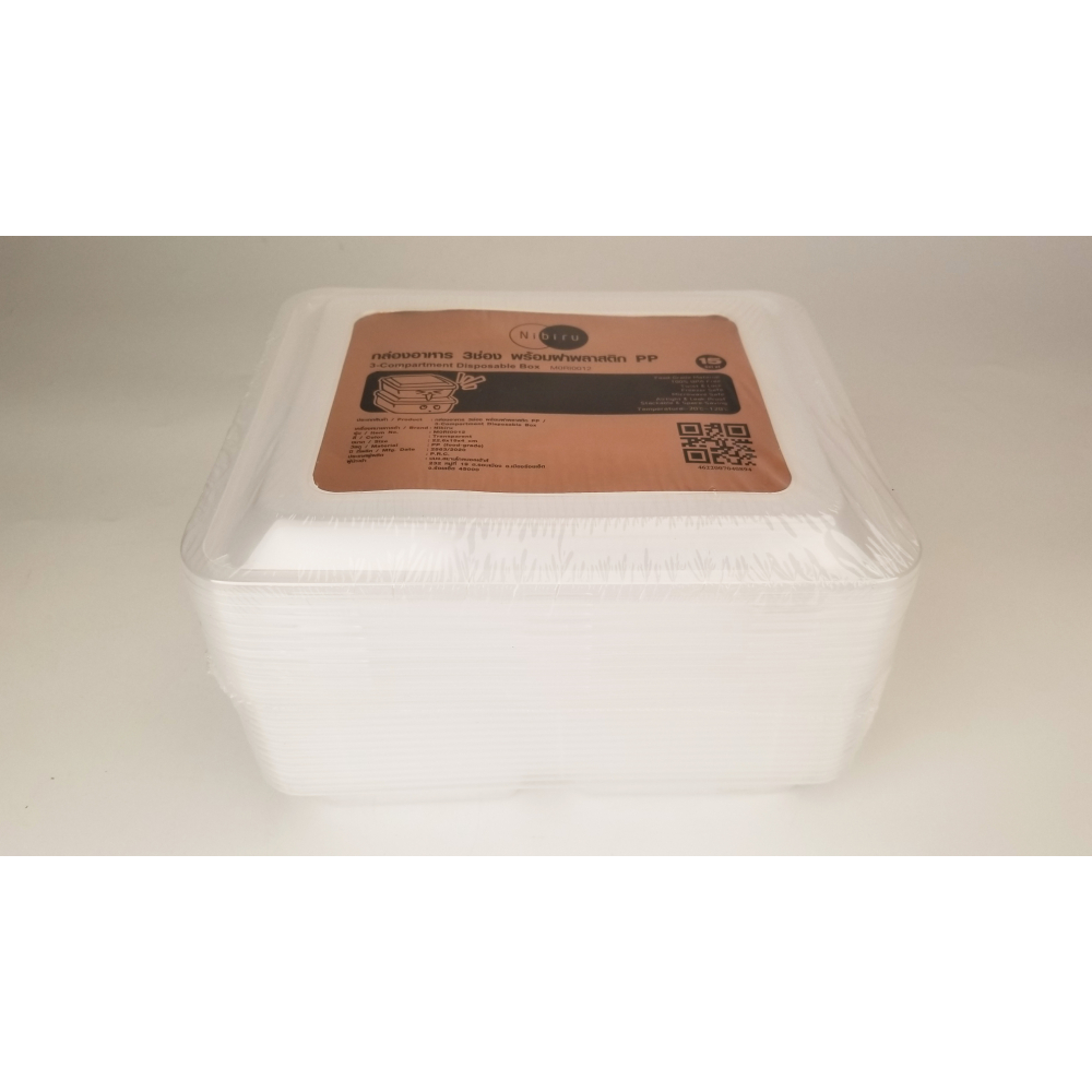 กล่องอาหาร 3ช่อง พร้อมฝาพลาสติก PP รุ่น Ki-Re-I
