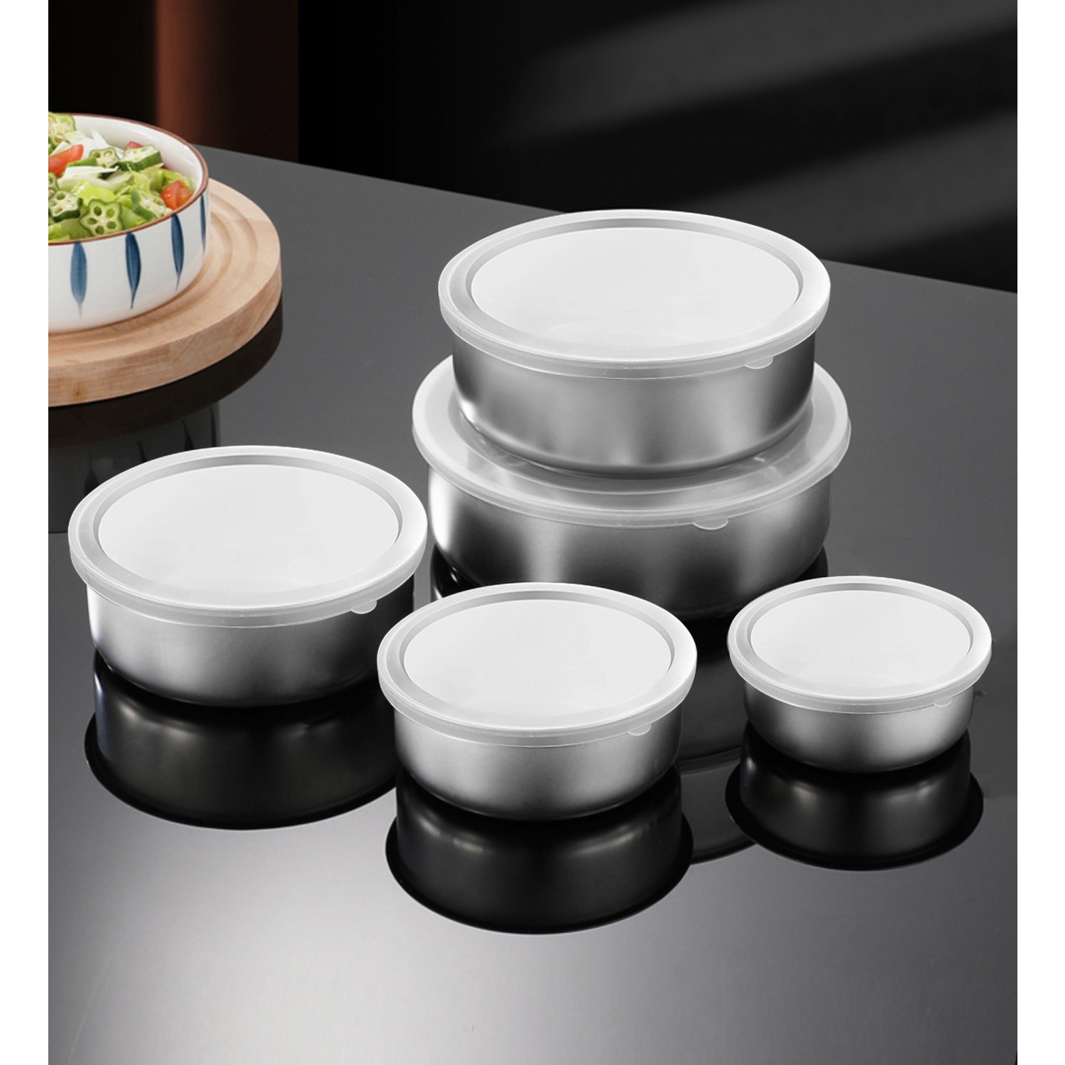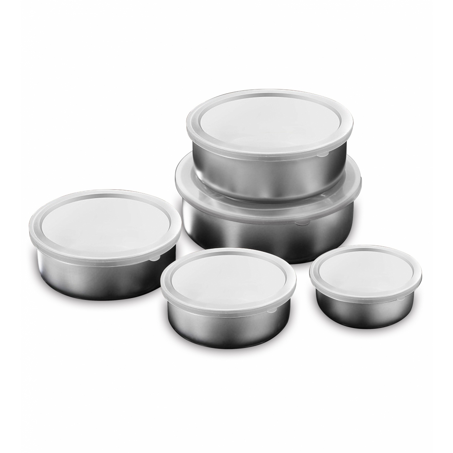 ชุดหม้อสเตนเลสพร้อมฝาปิด 5 ใบ สีเงิน