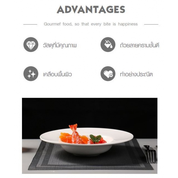 จานเซรามิคสินค้าเป็นที่นิยมกันมาก ในร้านอาหารไทยในต่างประเทศ ใช้บรรจุอาหาร คาว หวาน และของใช้กระจุกกระจิก สวยงาม ใช้ประดับบ้าน หรือ ใช้สำหรับบนโต๊ะอาหาร ปลอดภัย ทนทาน
