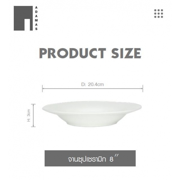 ADAMAS จานซุปเซรามิก 8 นิ้ว